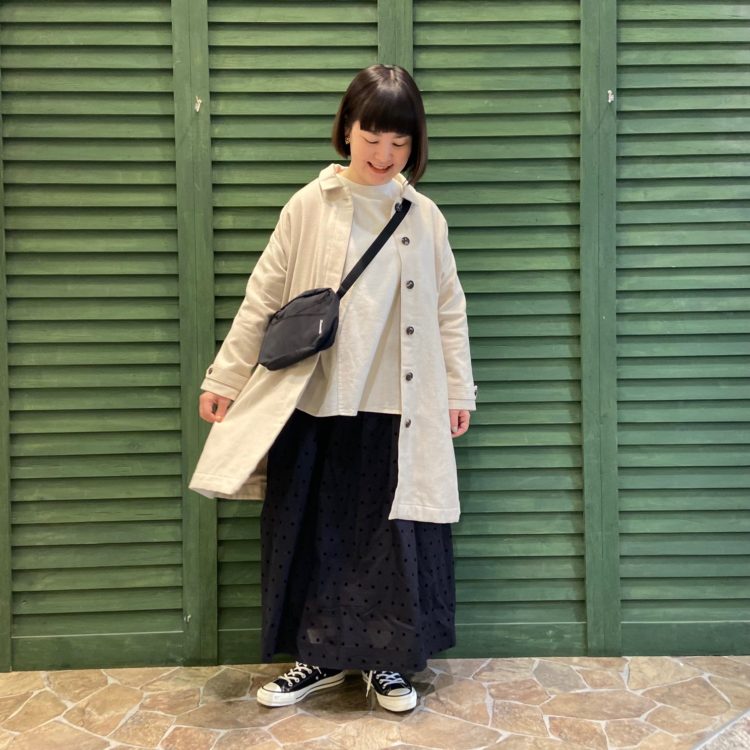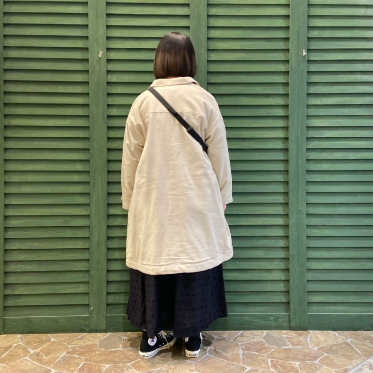 身幅ゆったりめのシャツは春はアウトに羽織るアイテムとしても重宝しそうです!