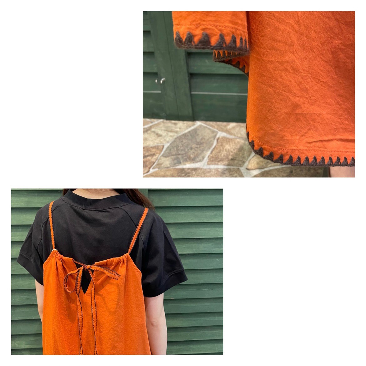 差し色となるオレンジのキャミワンピースを