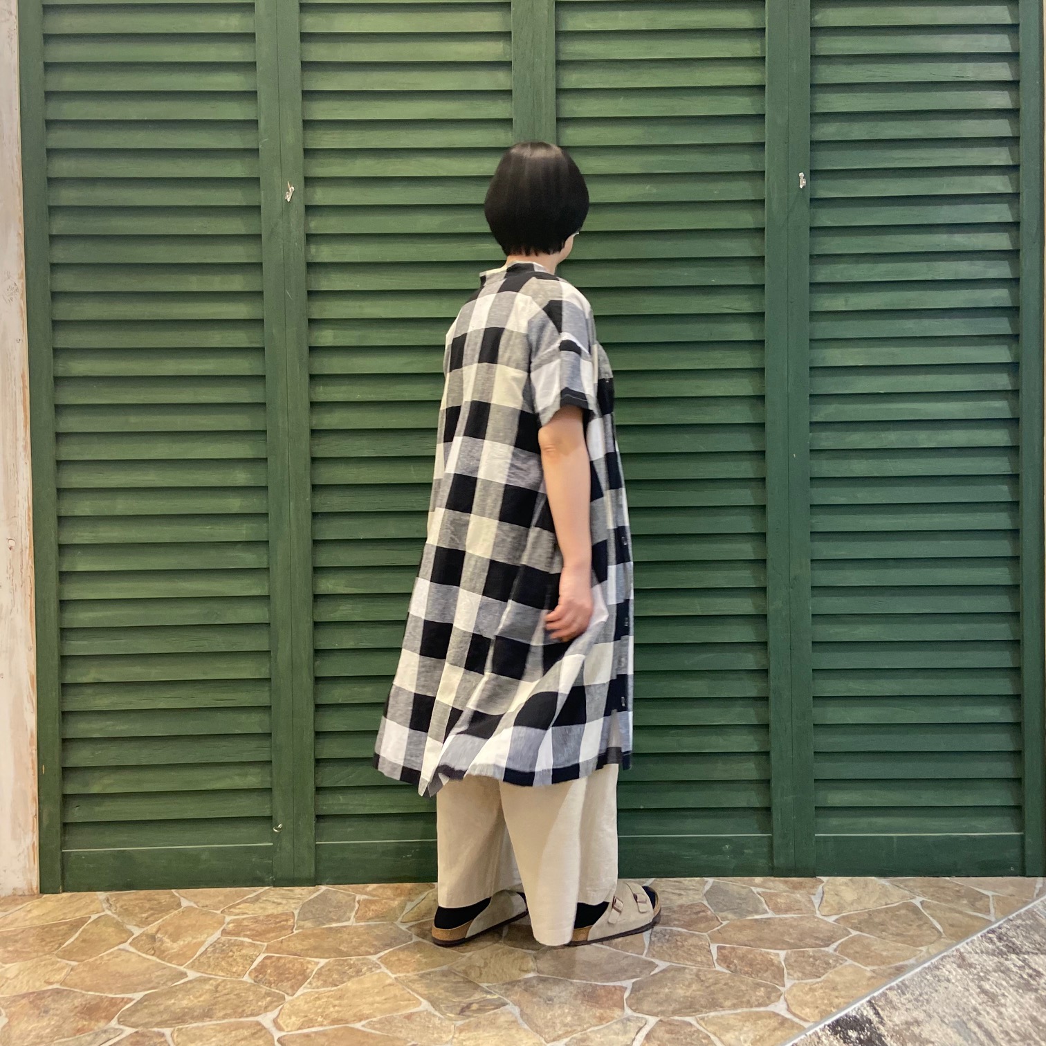 ギンガムチェックのベストとパンツでワンピースをサンドイッチしました☺︎