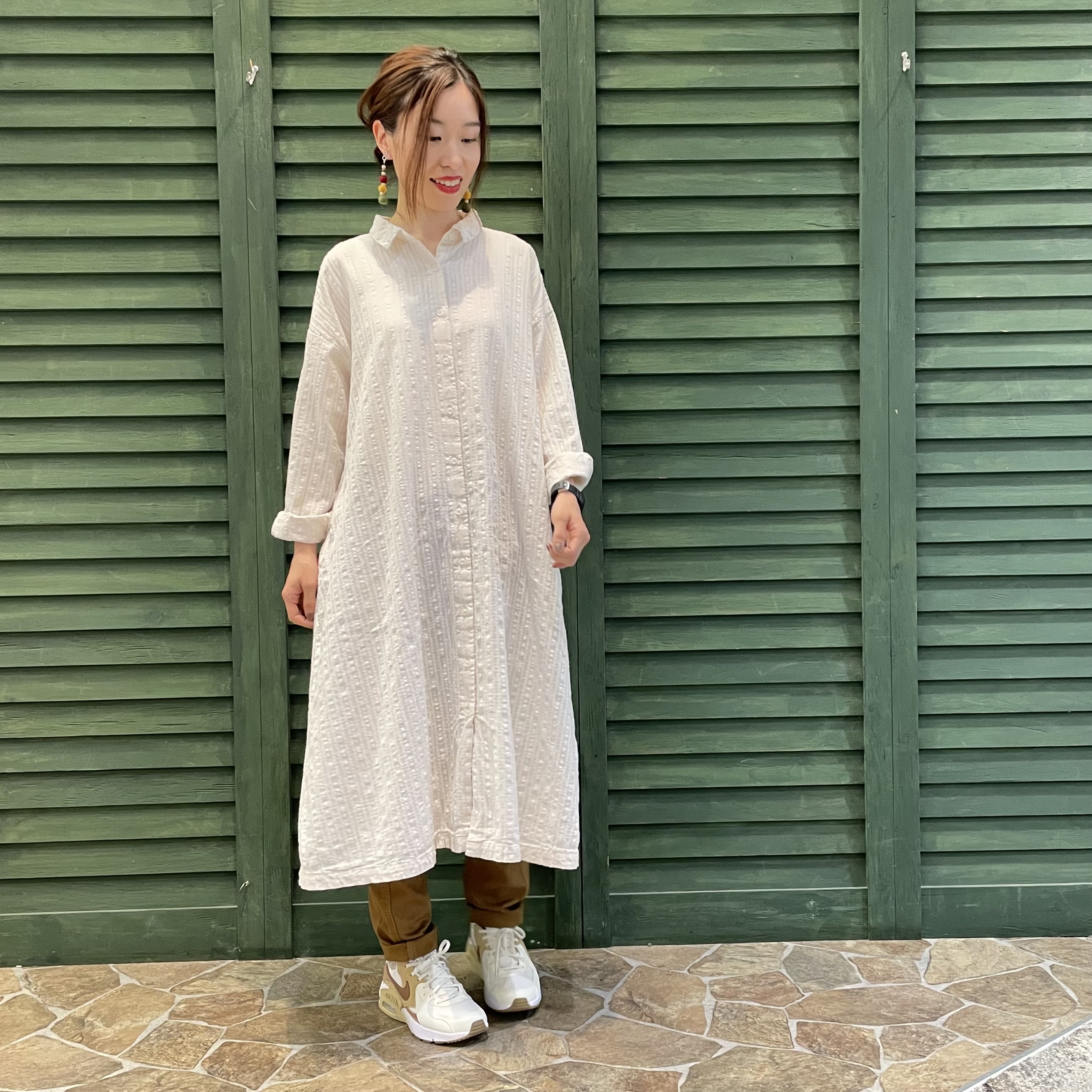 コットンドビーストライプ織シャツワンピース