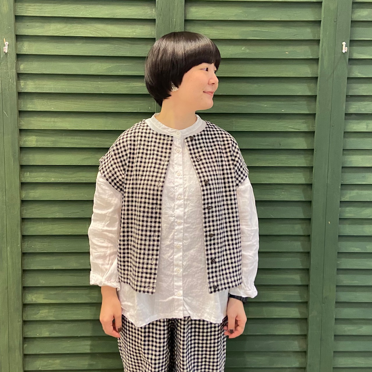 中に合わせているのはフレンチリネンの定番の長袖ブラウス