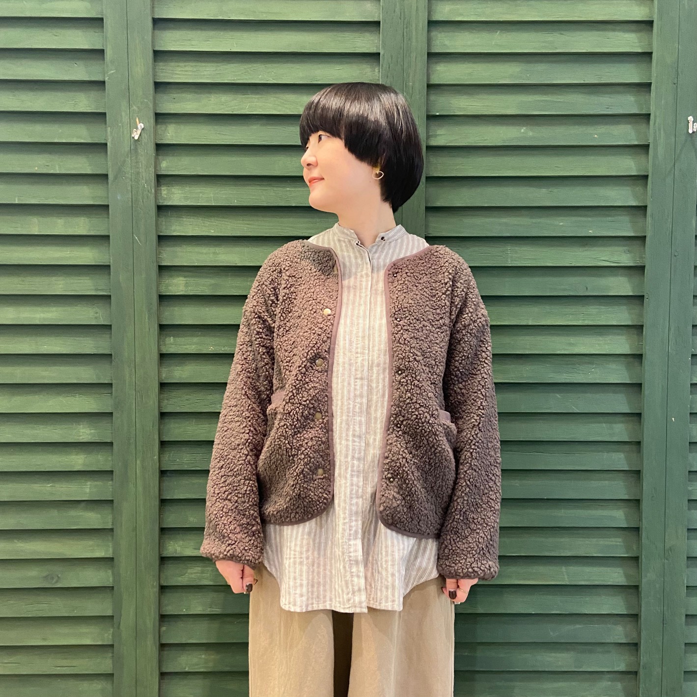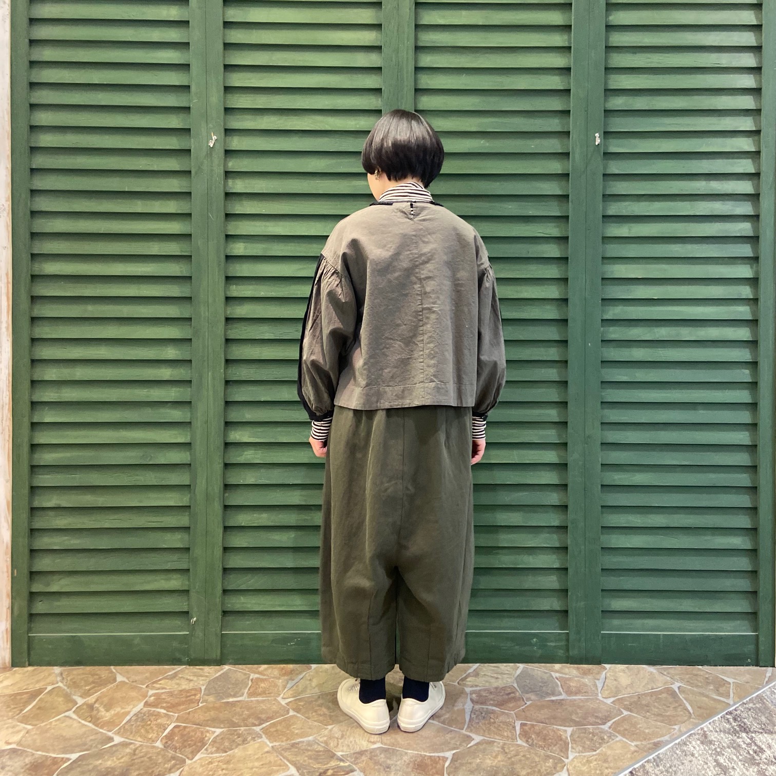 パンツと同じカーキを選び、セットアップふうにコーディネートしました