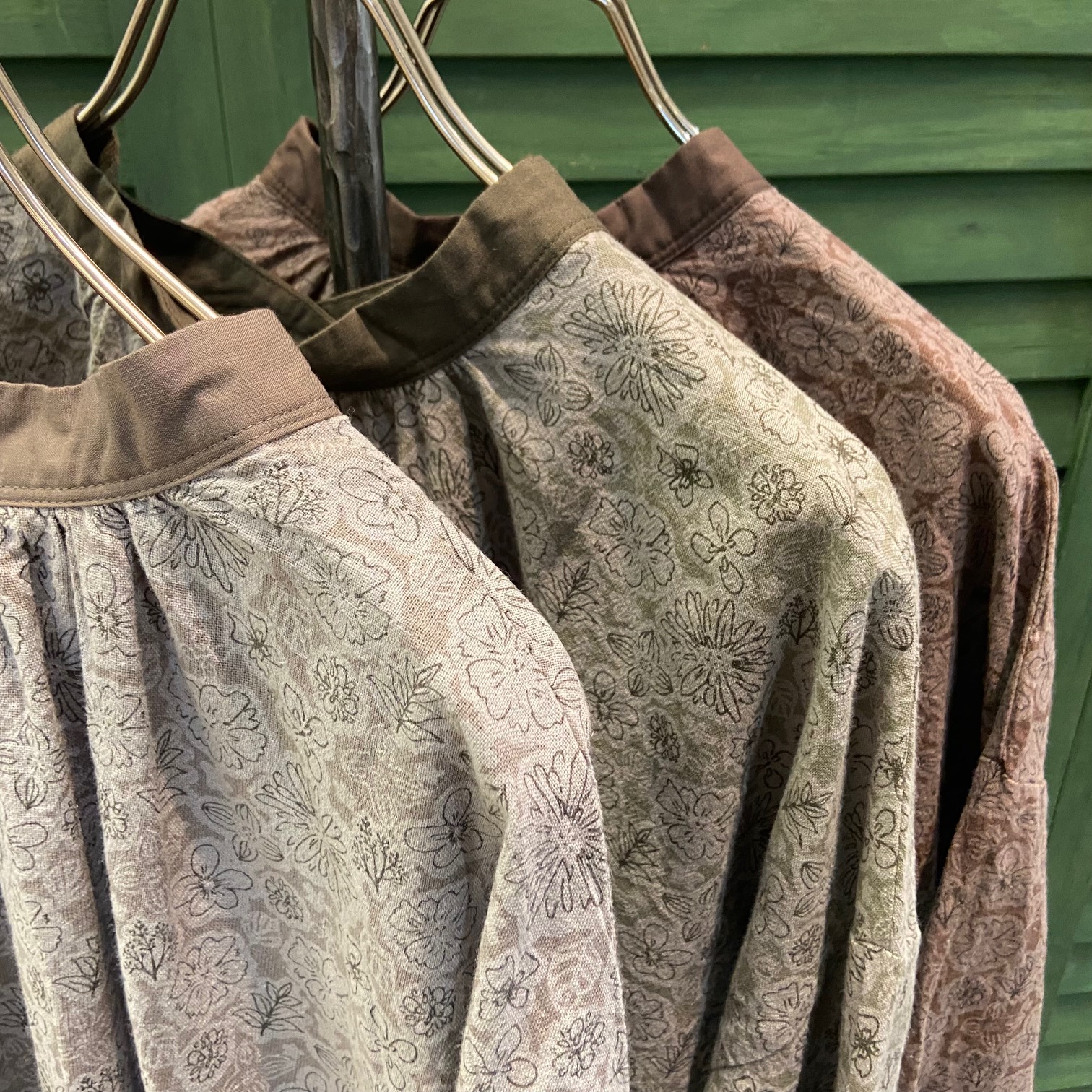 綿麻平織起毛総柄プリント2wayギャザーワンピ