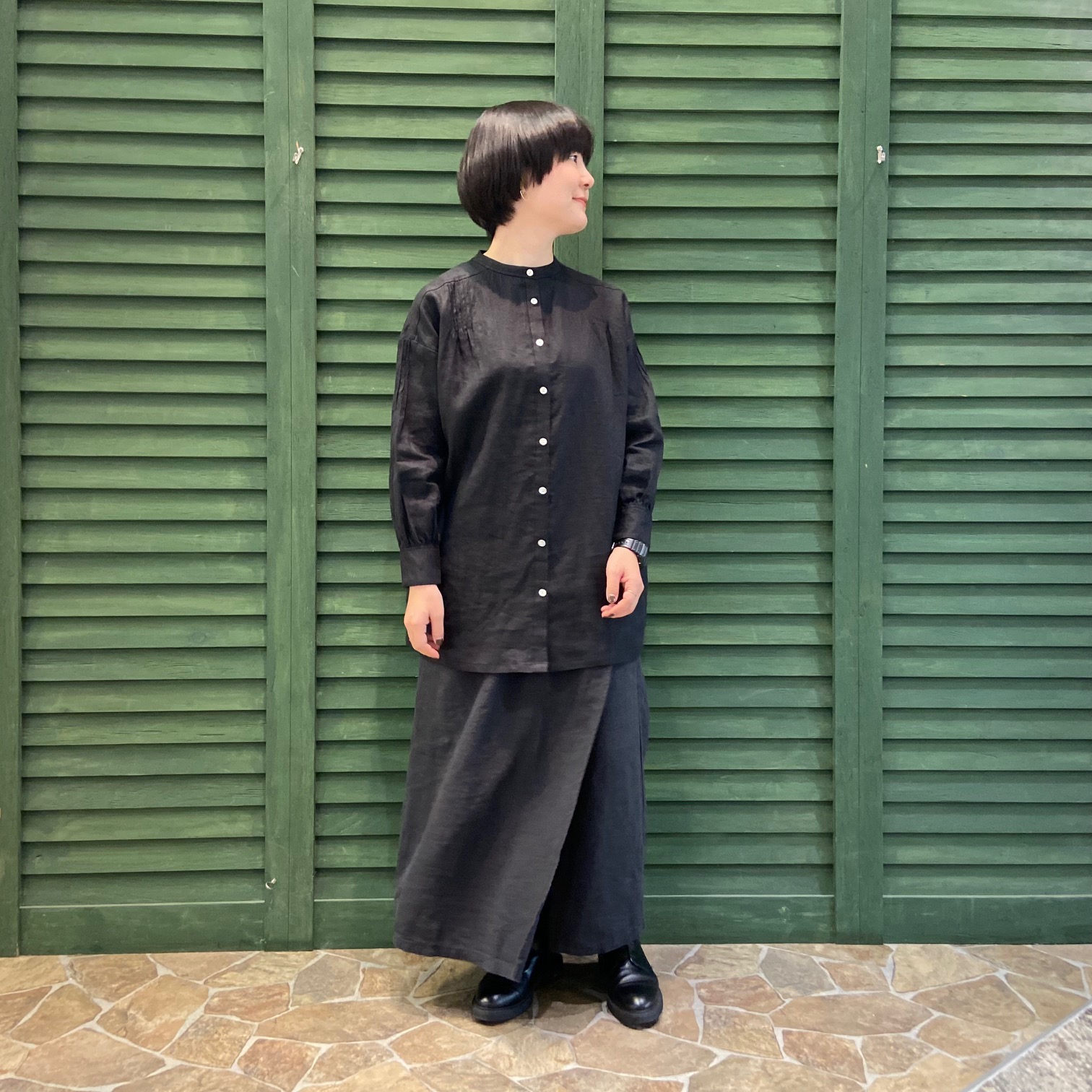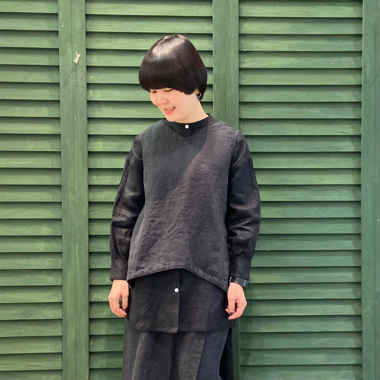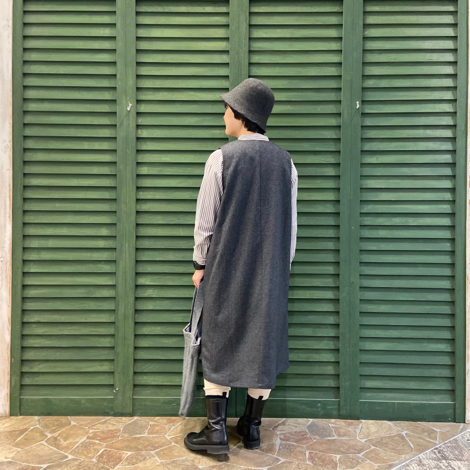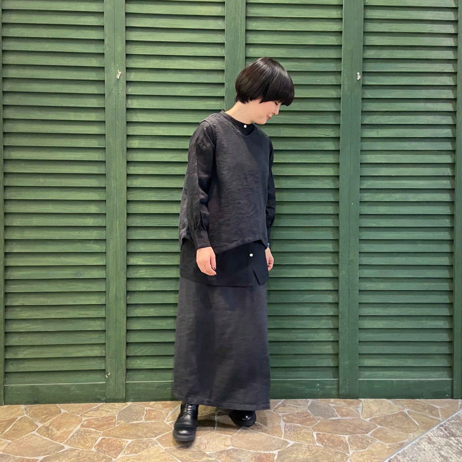 中に合わせているブラウスはチュニック丈なので重ね着にピッタリ