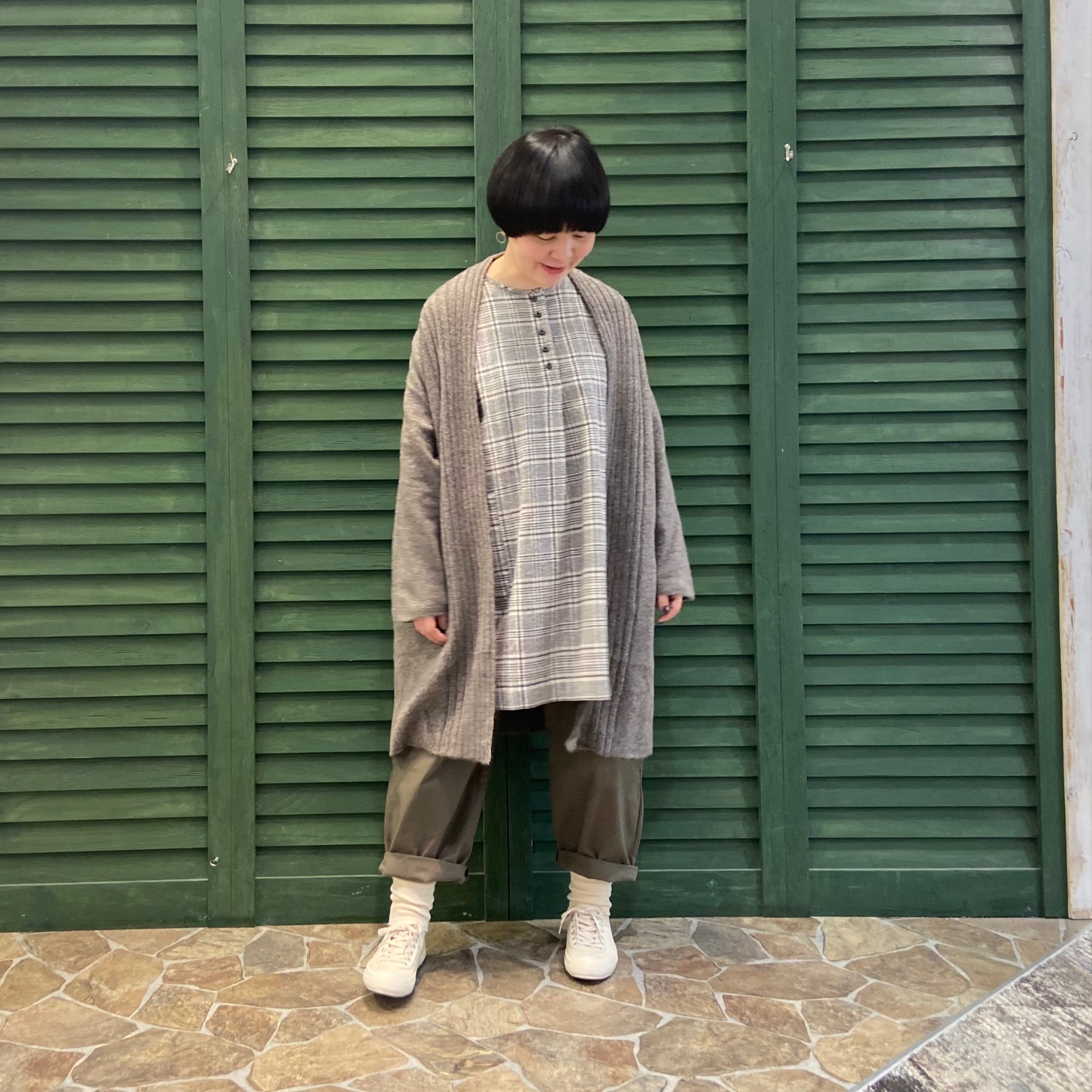まずはチュニック×パンツ×カーディガンのベーシックコーデ
