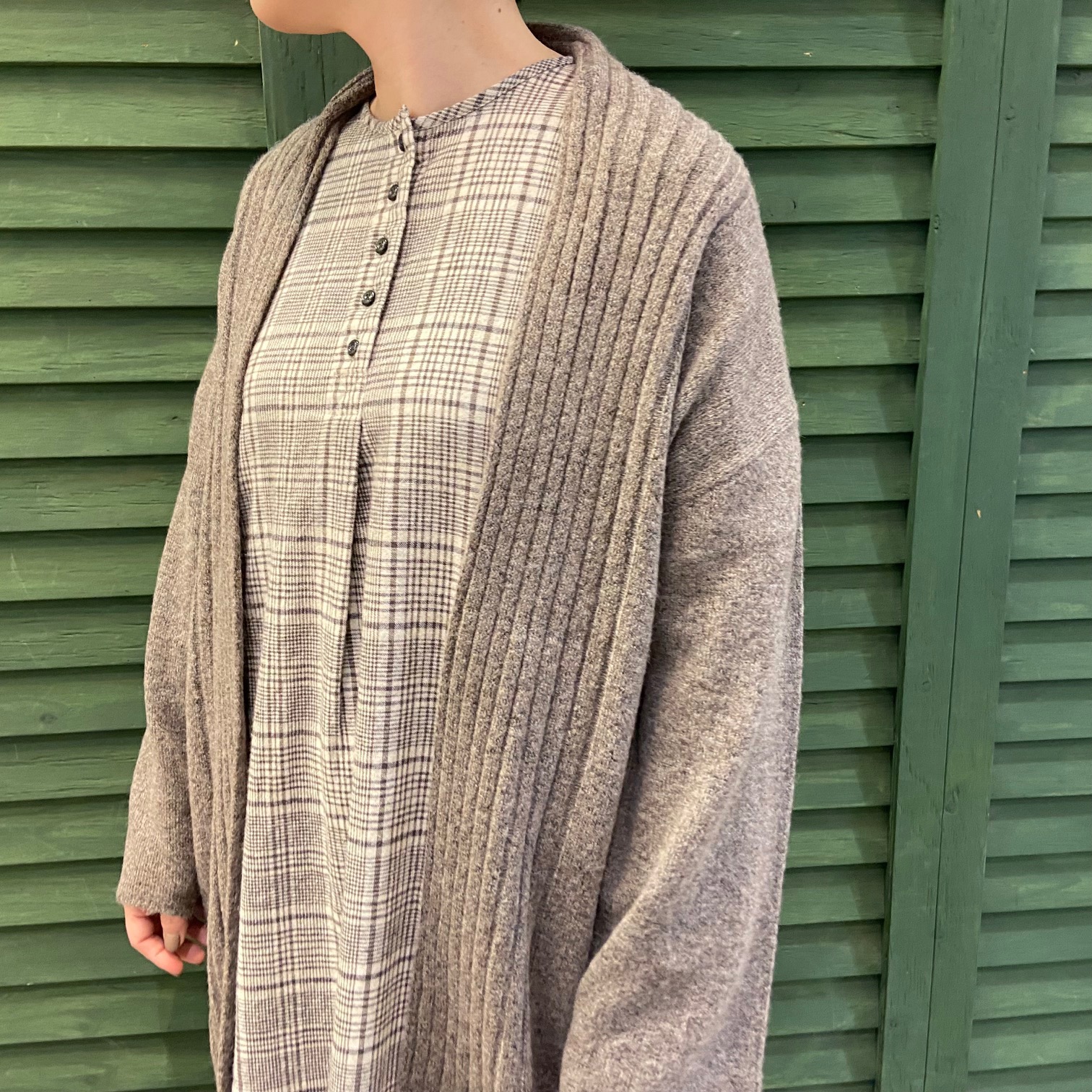 上に合わせているベストは袖口がたっぷりとしているので、ドルマンスリーブでもスムーズに重ね着できてとっても便利!