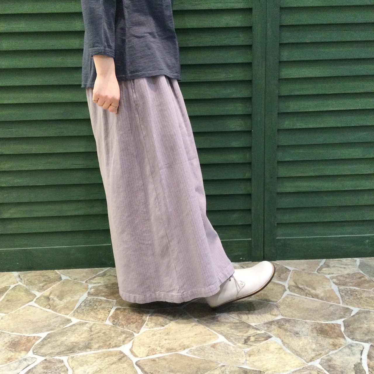 フロントのタックがすっきりと、みせてくれて、裏地はついていませんが、透け感ないので一枚でサラリと履けちゃう。