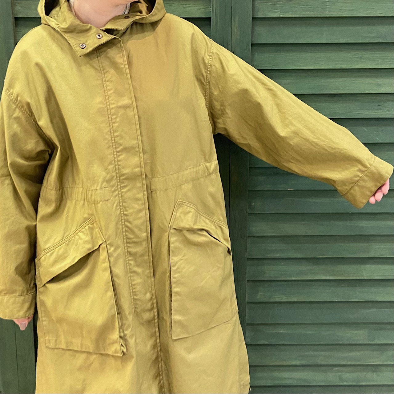 思いっきりゆるく着られるサイズ感なので、早い時期はニットカーデやインナーダウンで重ね着する事が出来ます☺︎
