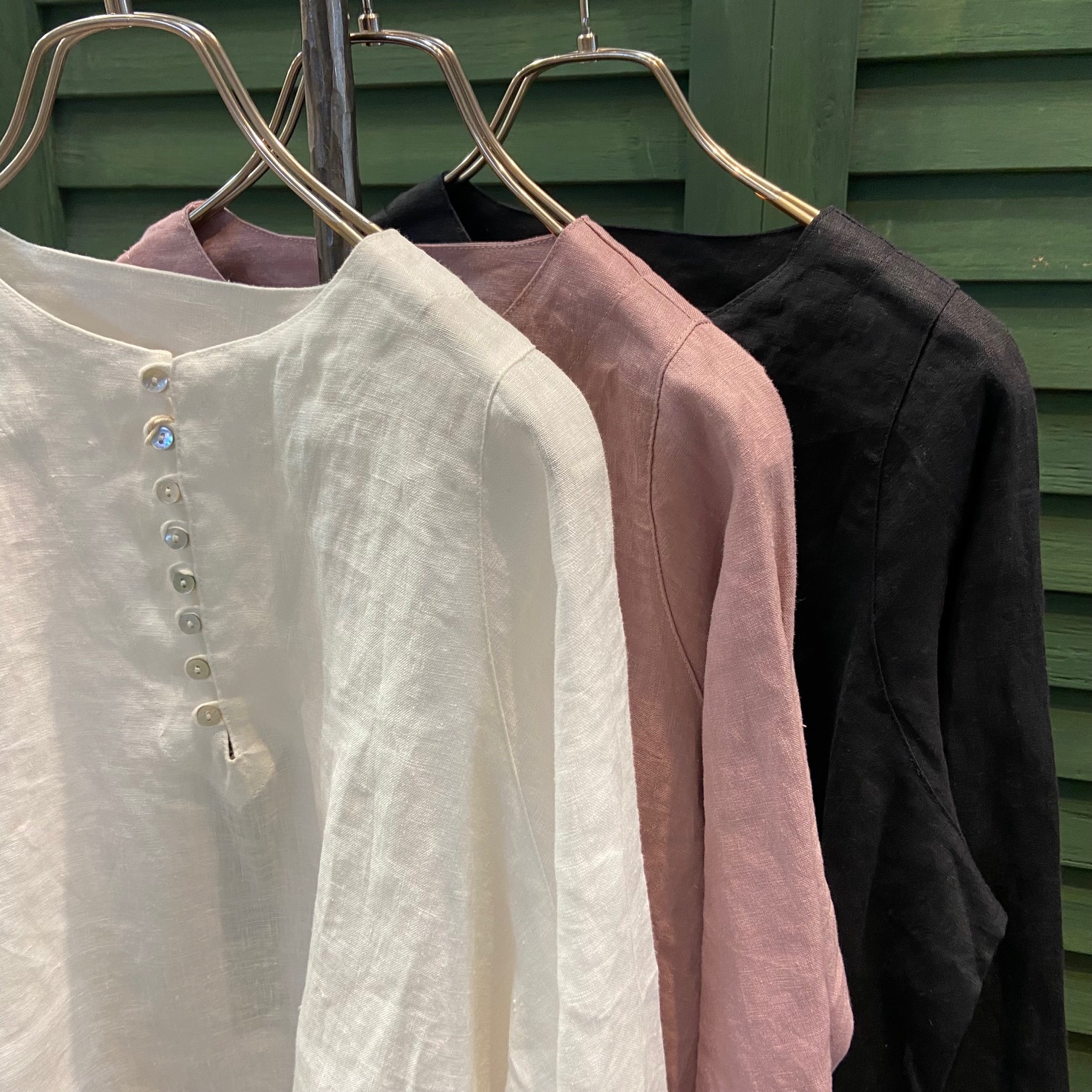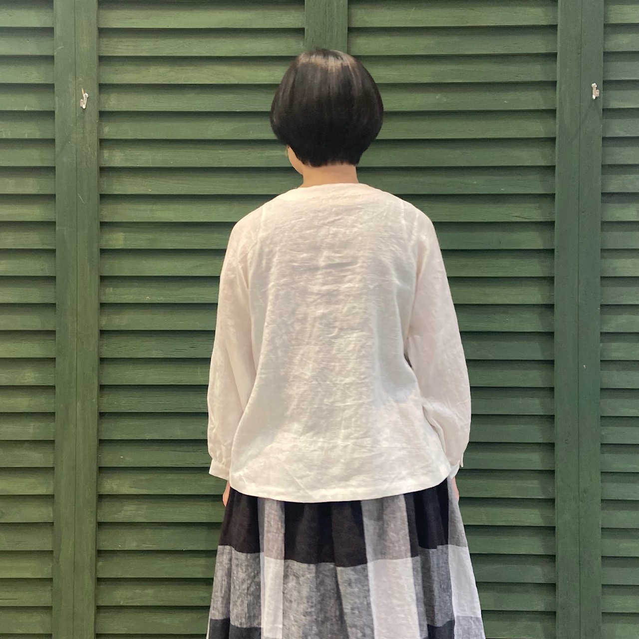 厚みがある9番手リネンはハリもあり、ちょっとキチンとめなアイテムにも合わせやすい1着