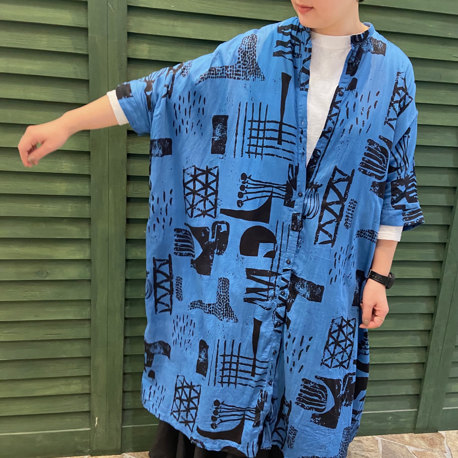 Air Jet キャンブリッククロスピンプリントロングワイドシャツ