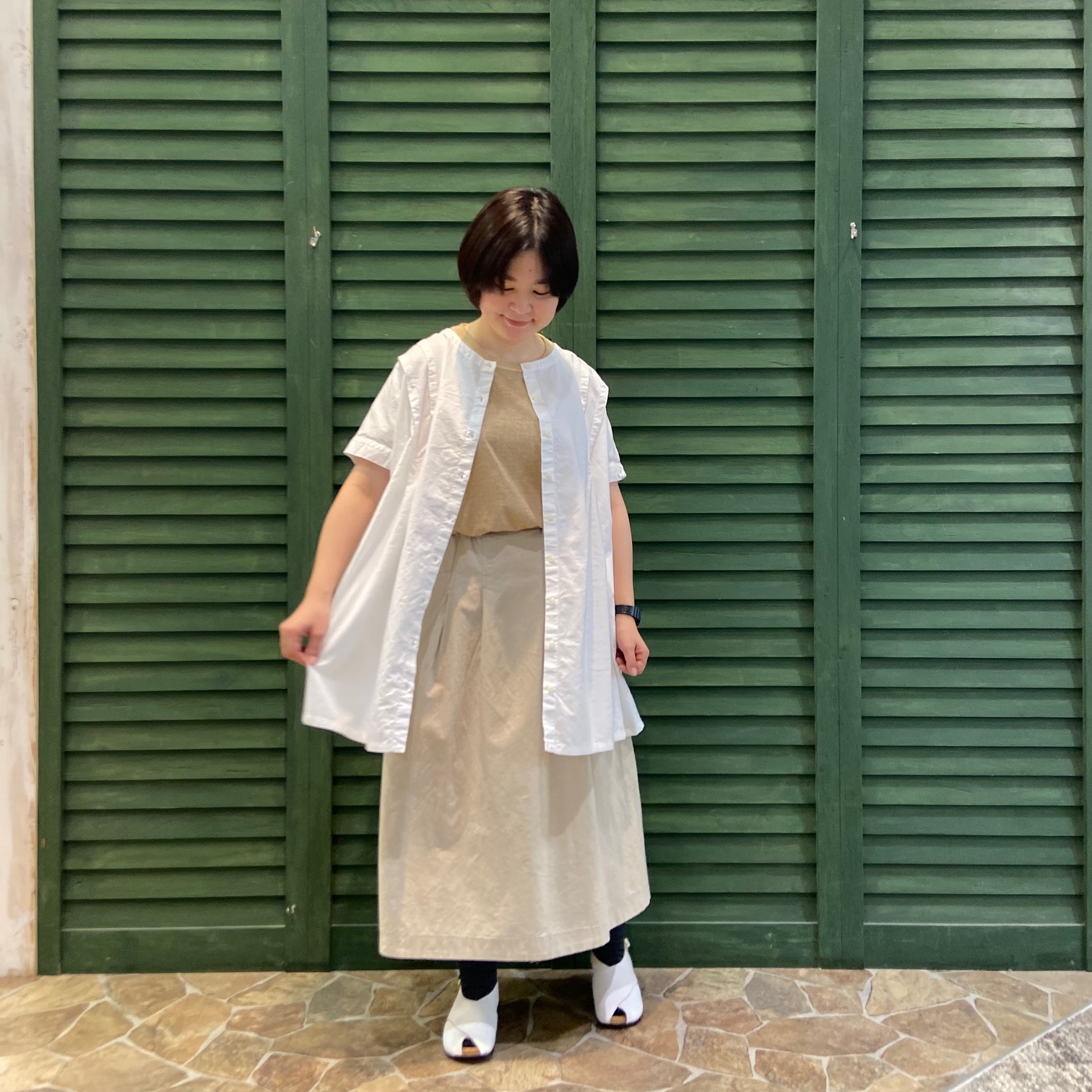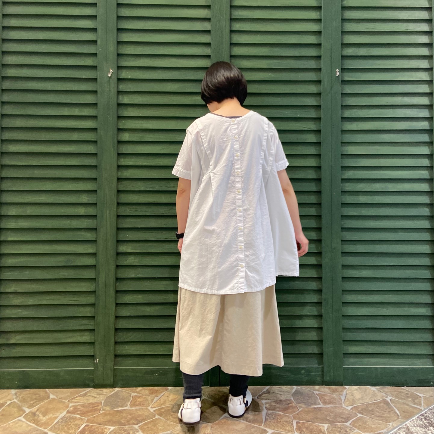 バサっとしたドライな風合いの生地なので纏わりつきが少なく、これからの時期にオススメです