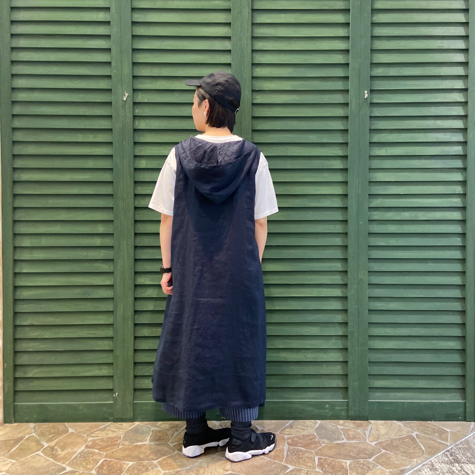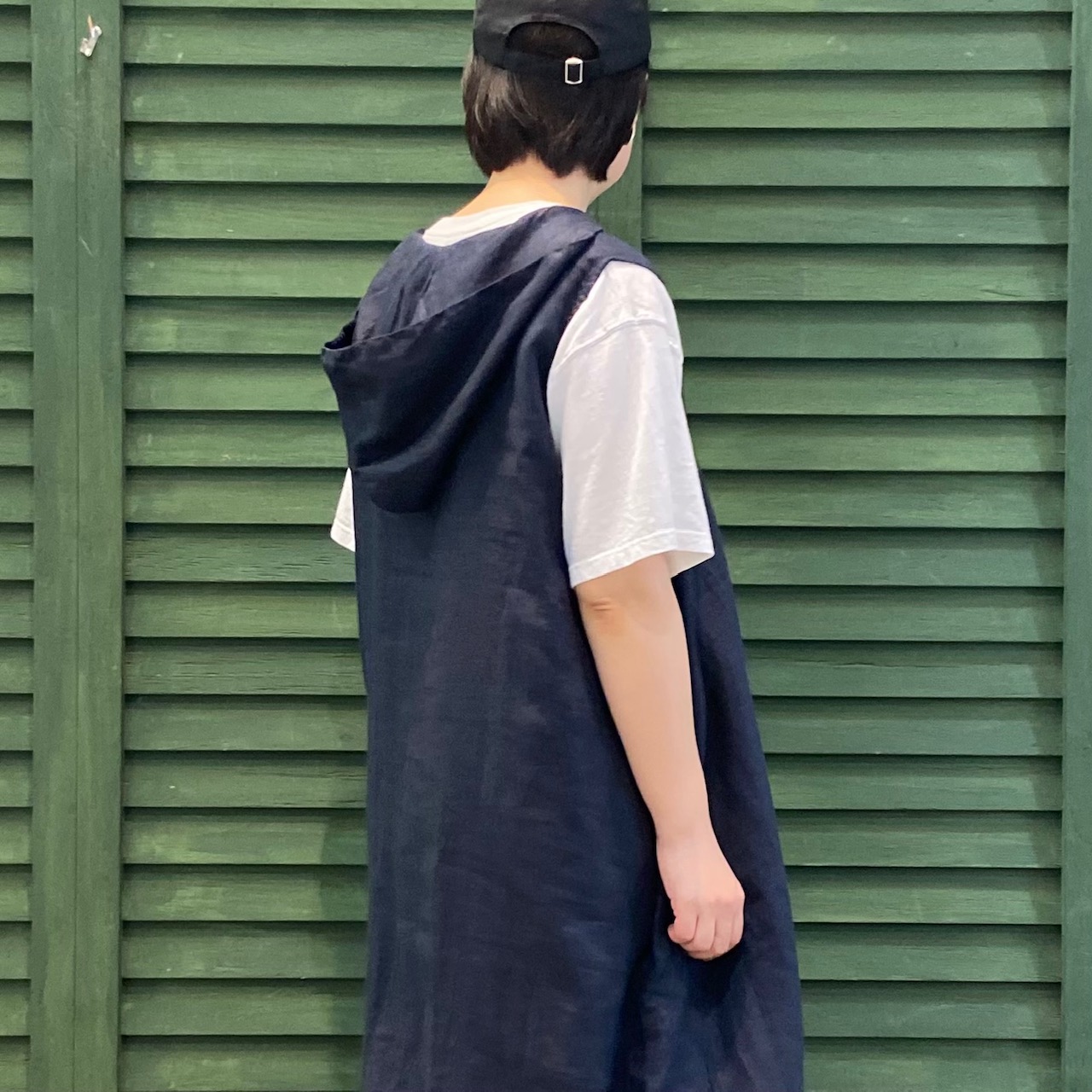 14番手リネンフード付きノースリワンピ