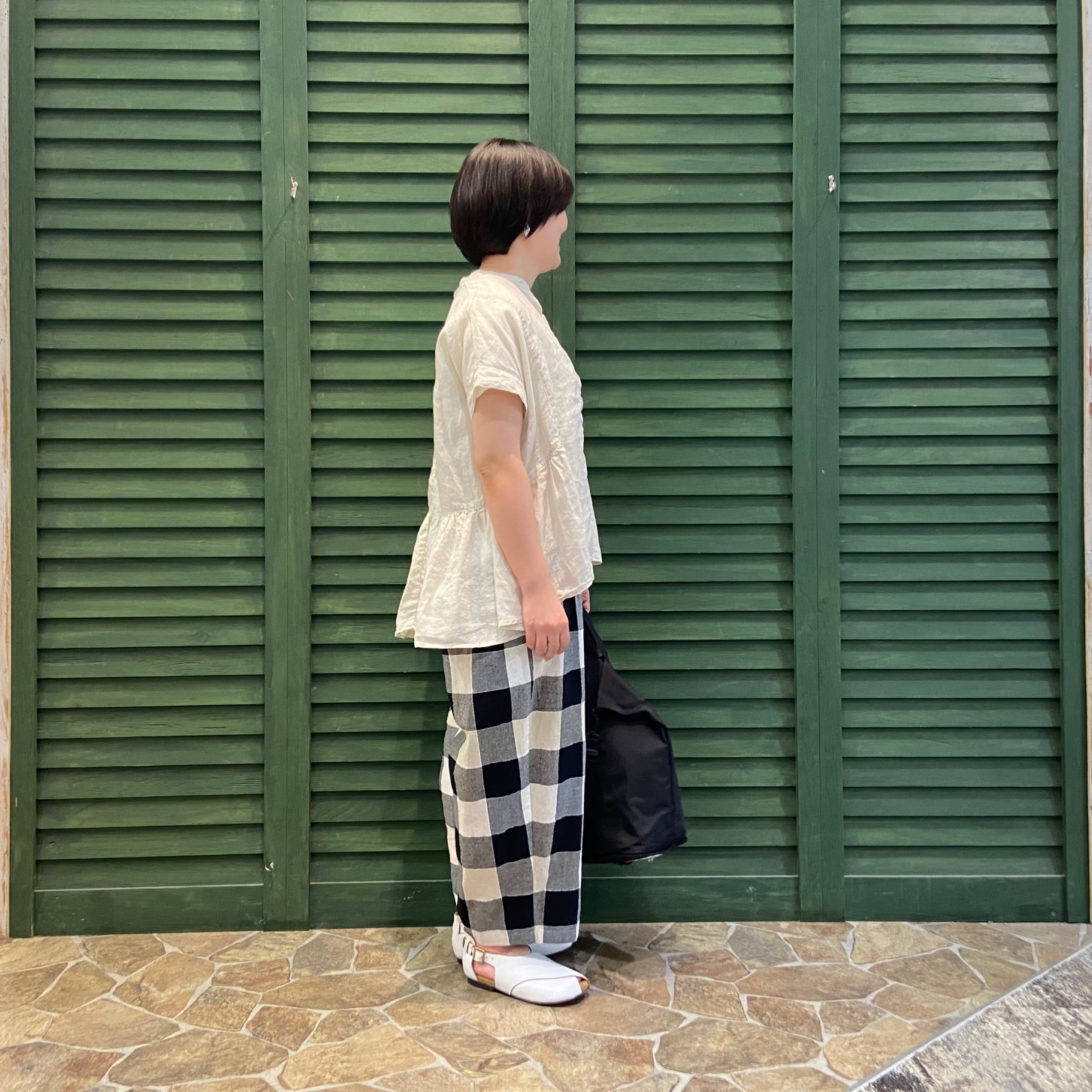 小柄な方はパンツのゆるさや長さを活かして、フルレングスのパンツのようにダボっと履くのがオススメです