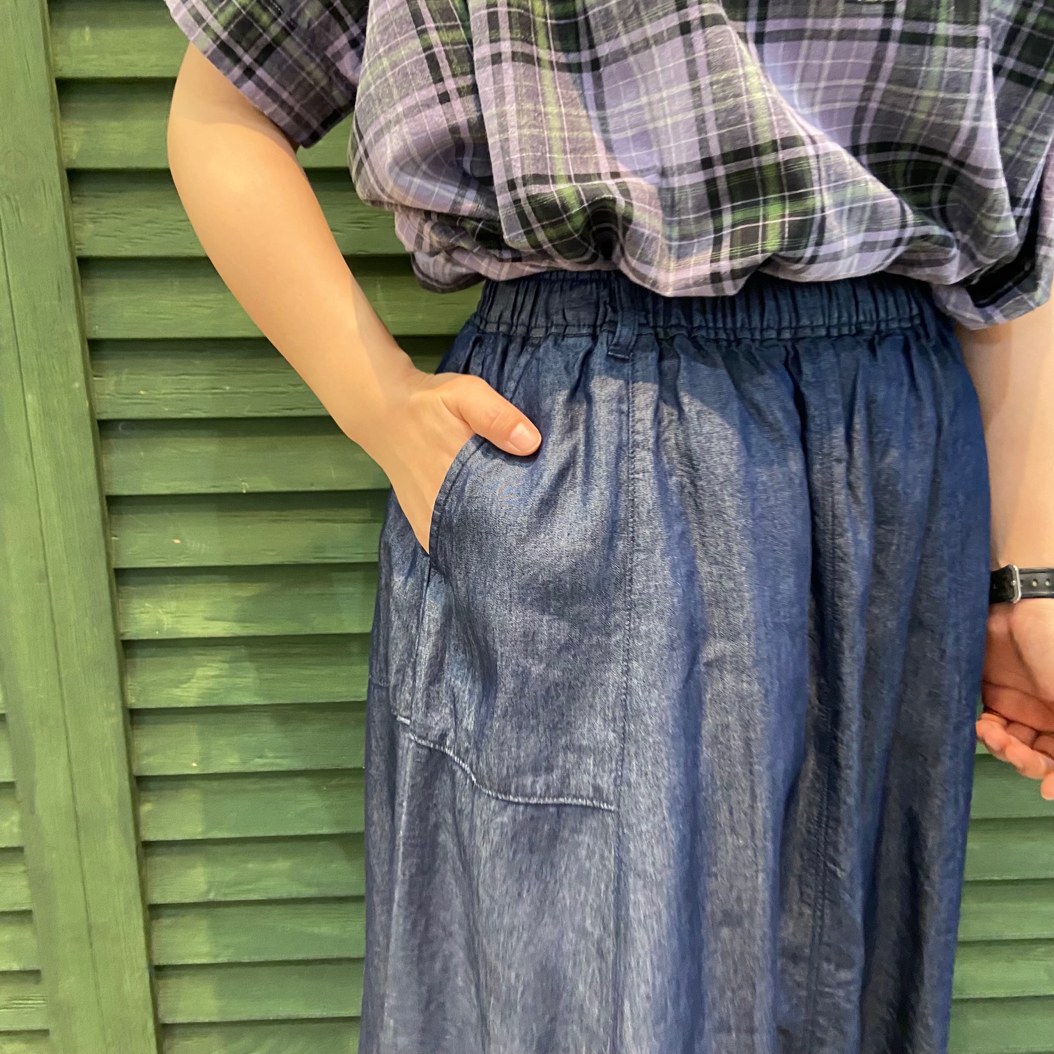 スカートは綺麗なシルエットを保つハリがあり、ウエストは総ゴムで締め付けが少ないので、とても楽な履き心地