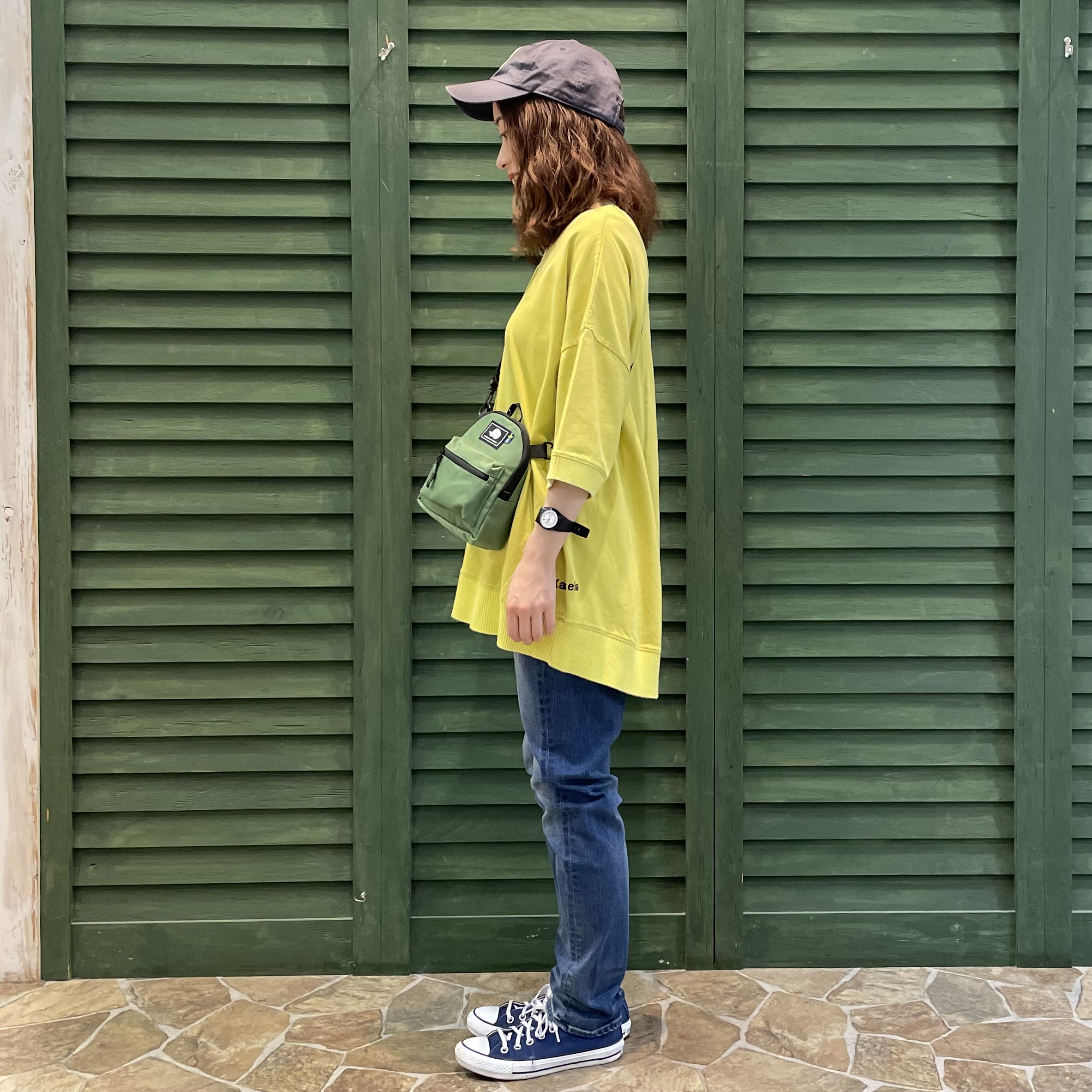 col.Y/グリーン(着用)、チャコール、