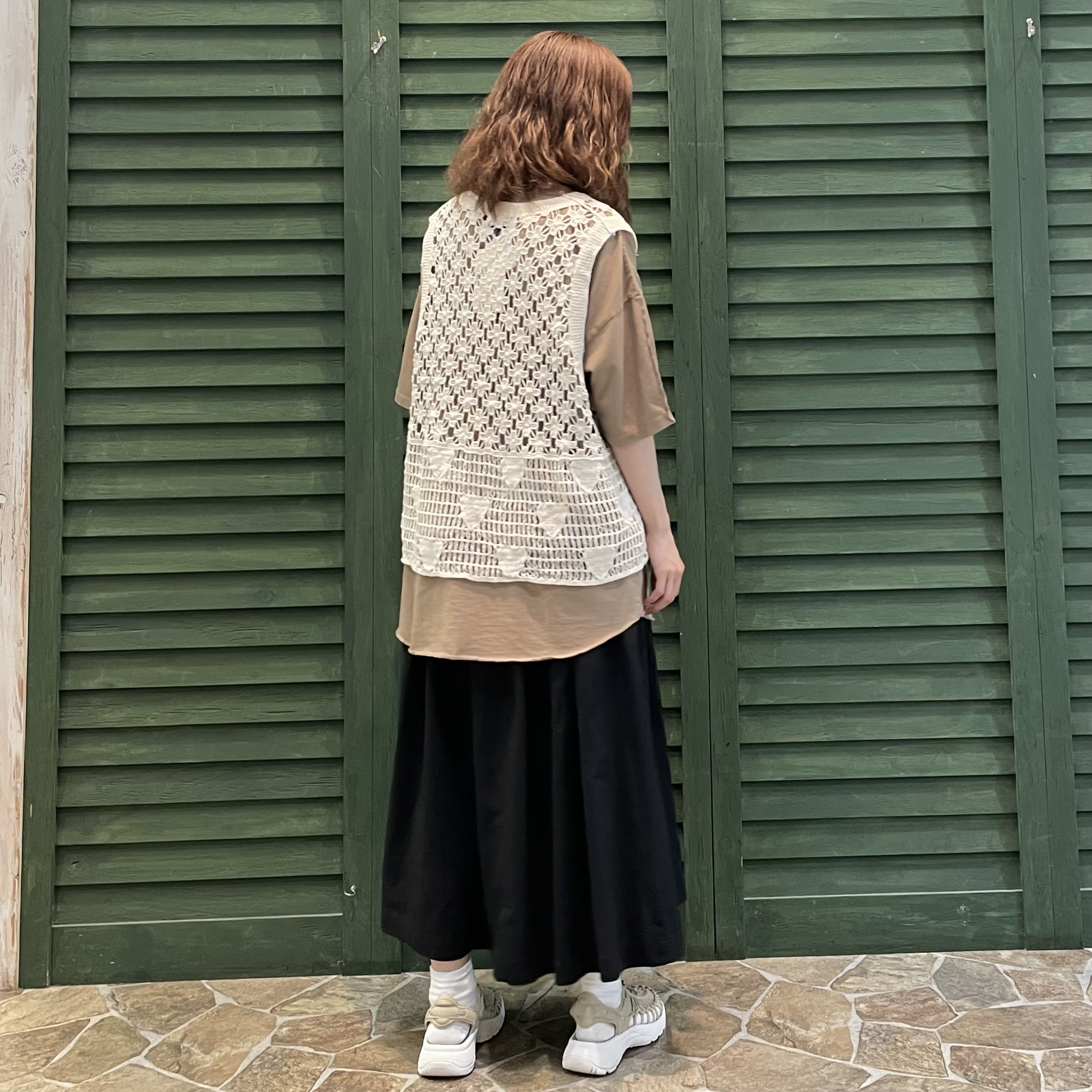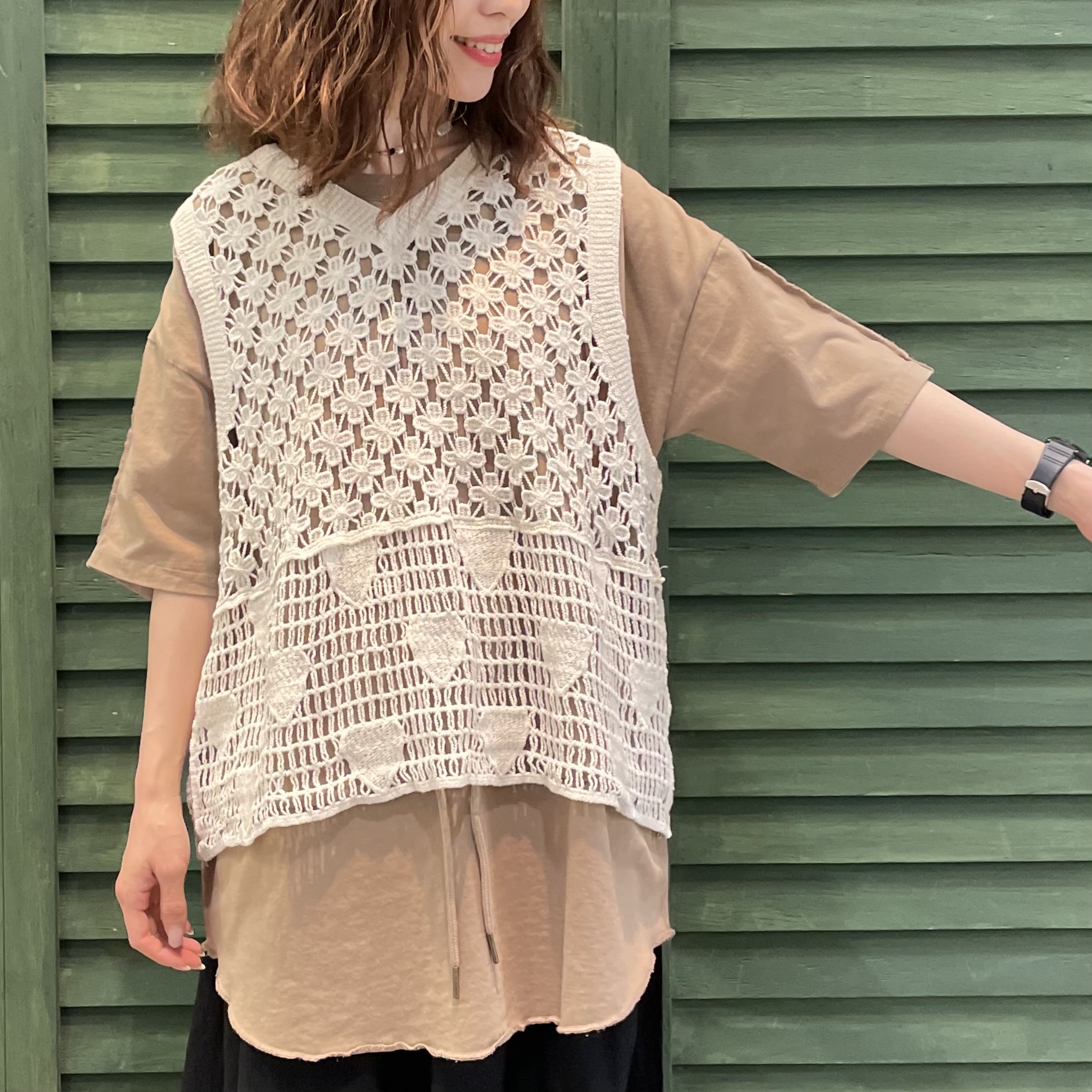 透かし編みニットワイドベスト