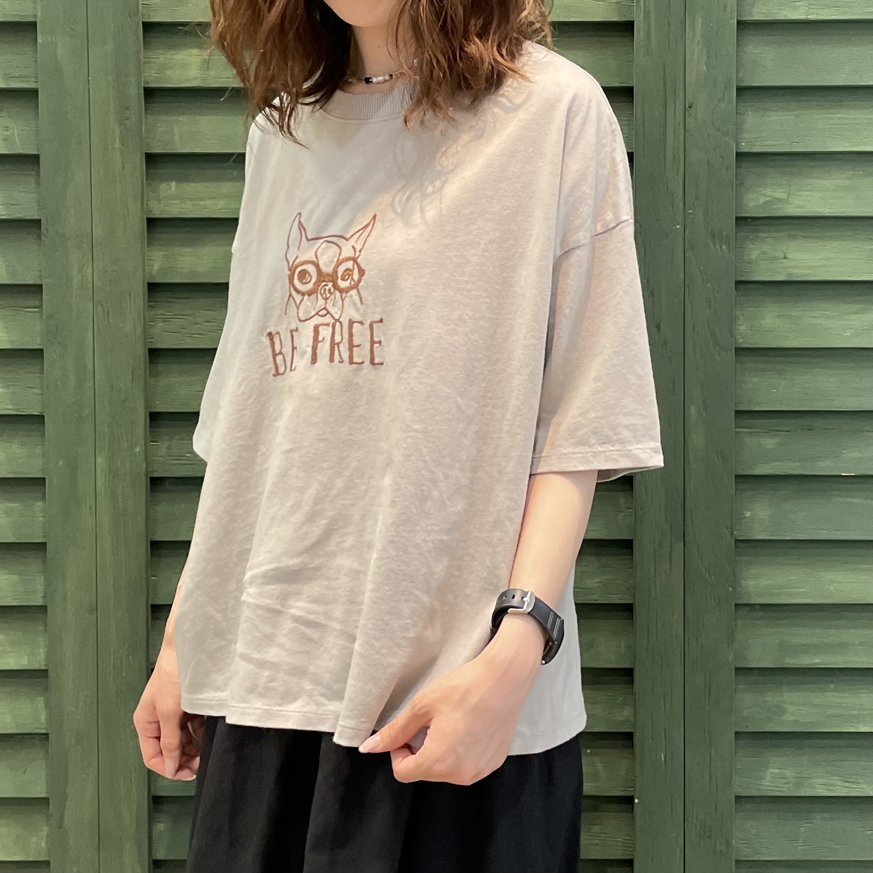 BE FREE犬刺繍クルー