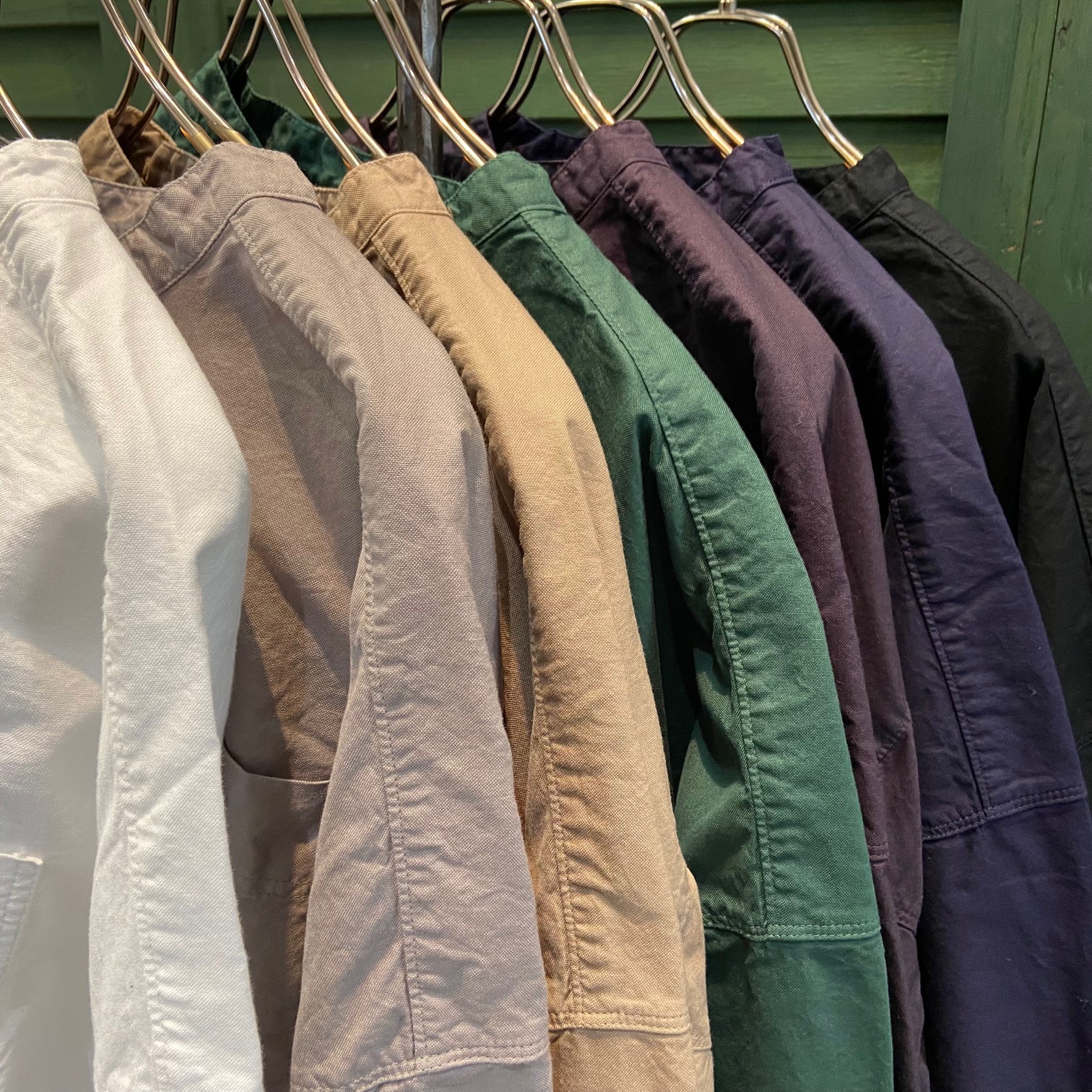 暖かい日はコートとしても使える少し厚地な9番手リネンを使用