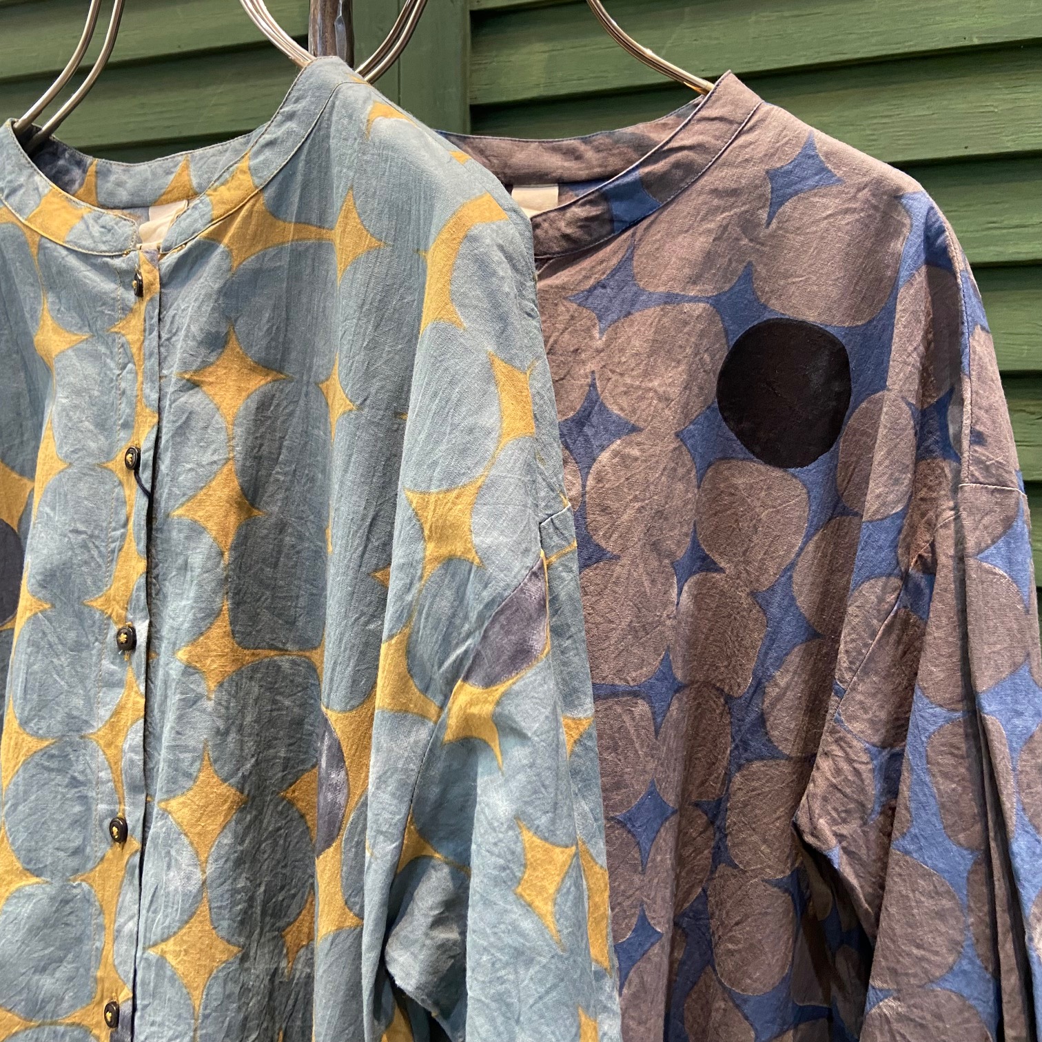 早くも春っぽさを感じさせるナチュラルな配色の大きいドット柄