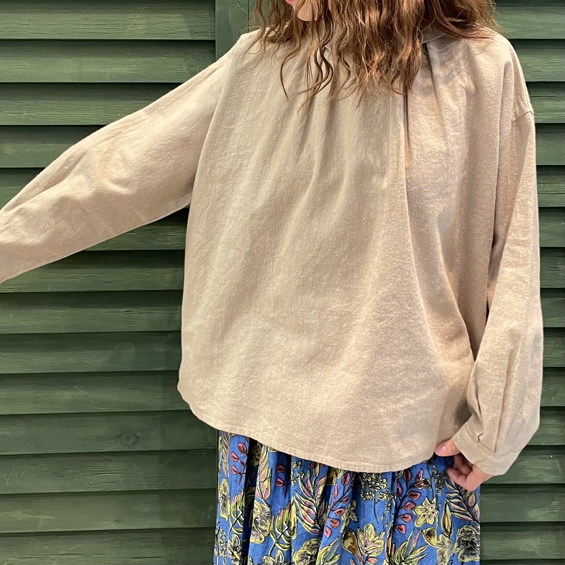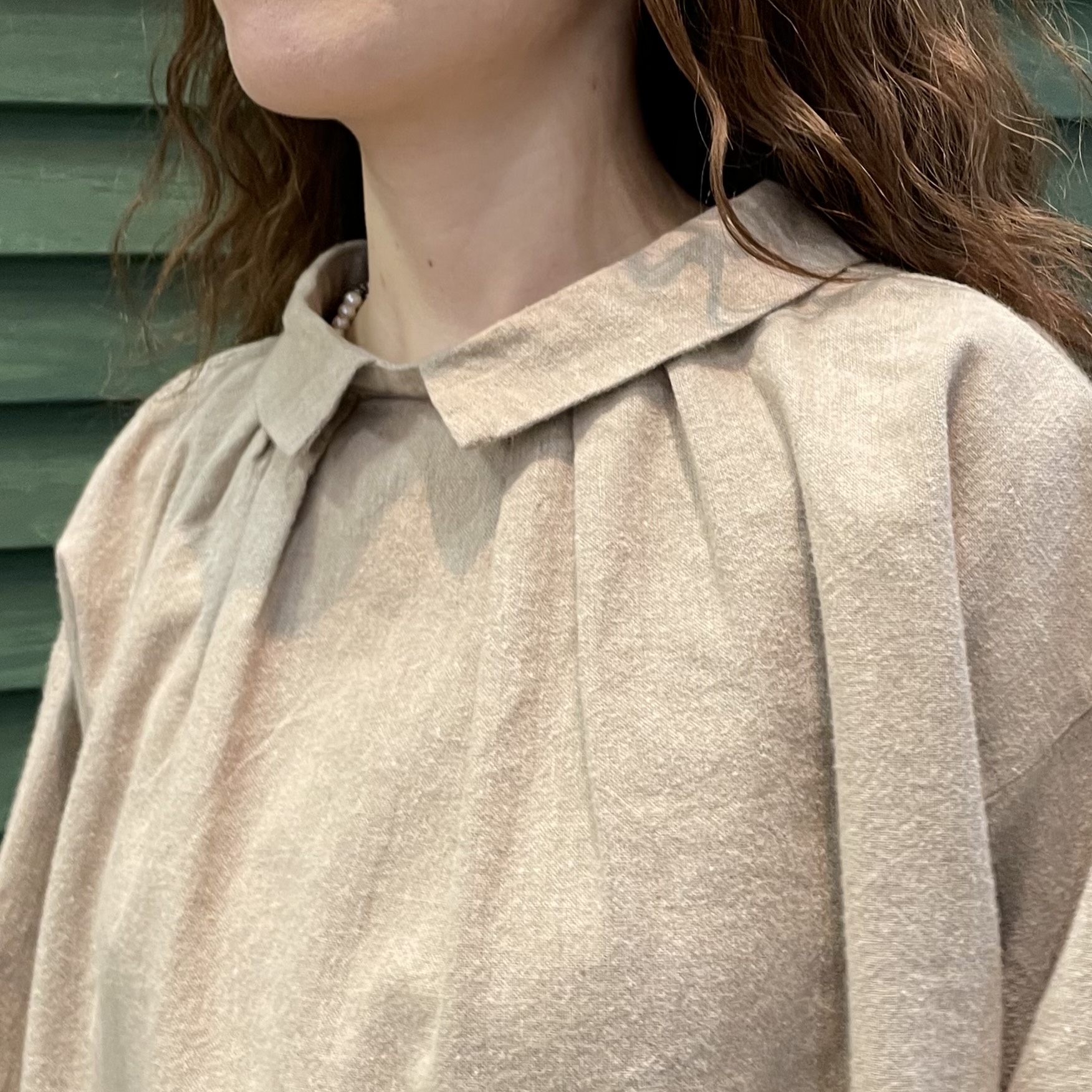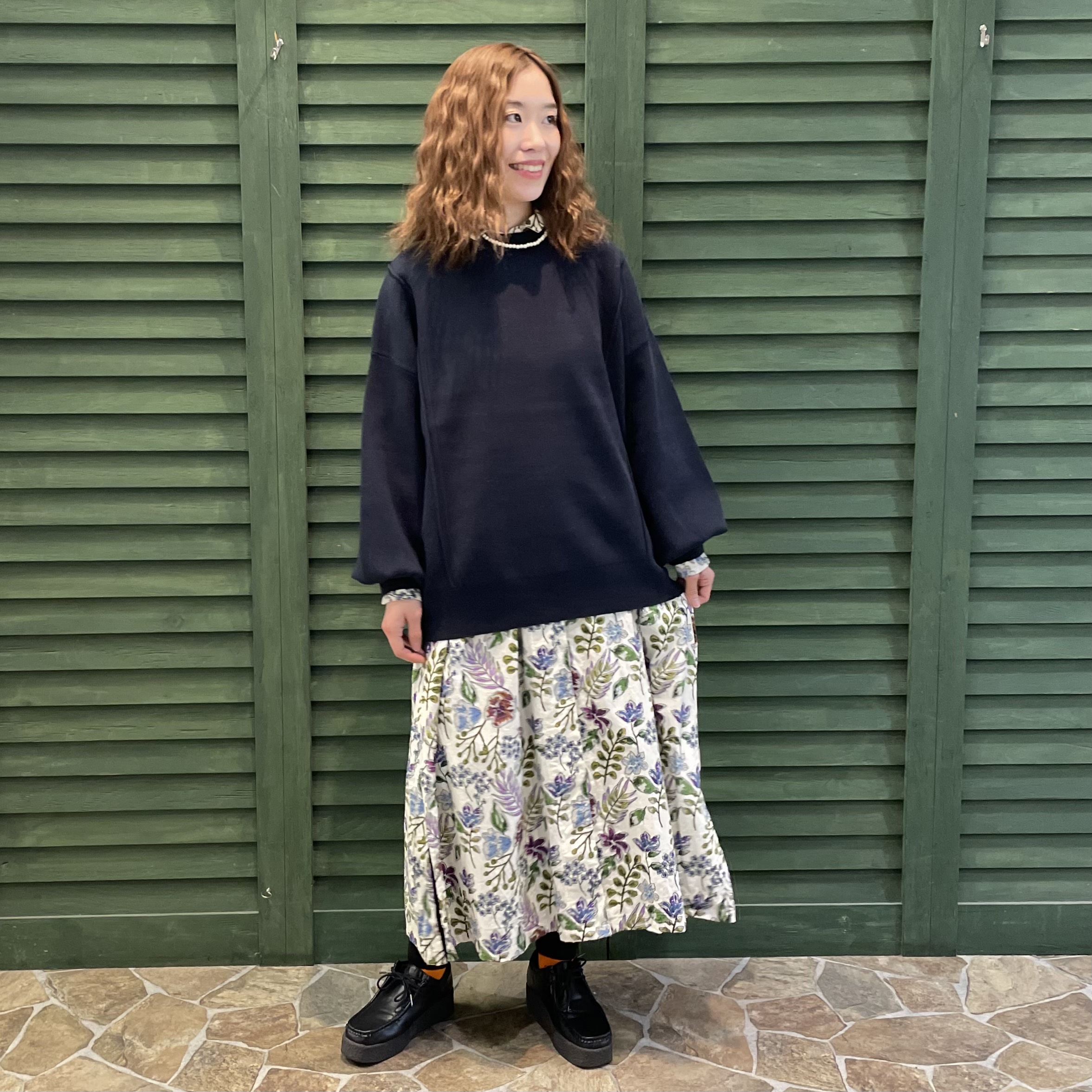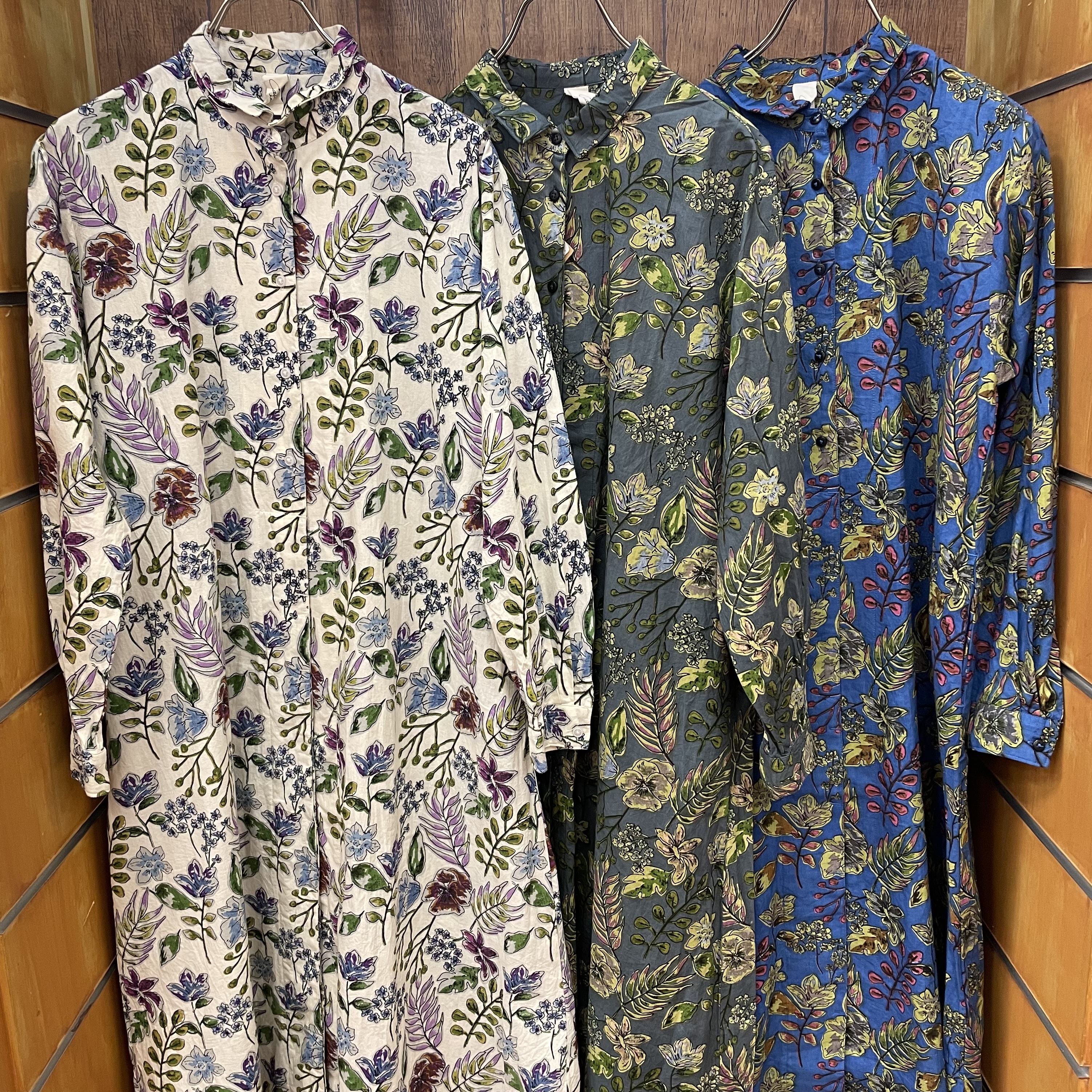 ギャザースカートと同じ総柄のワンピースバージョン。
