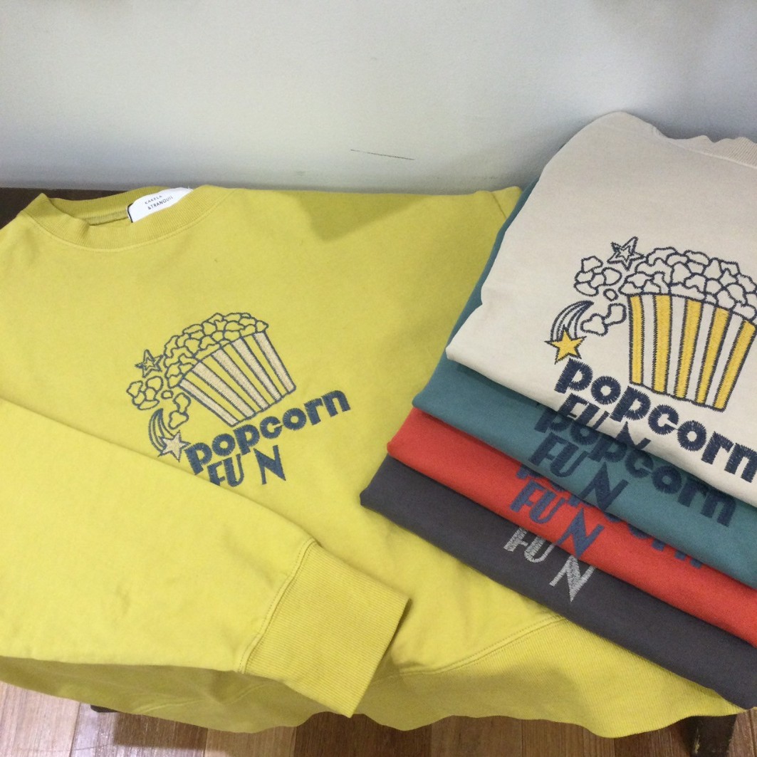 ポップコーンの刺繍が可愛いらしいアイテム♪