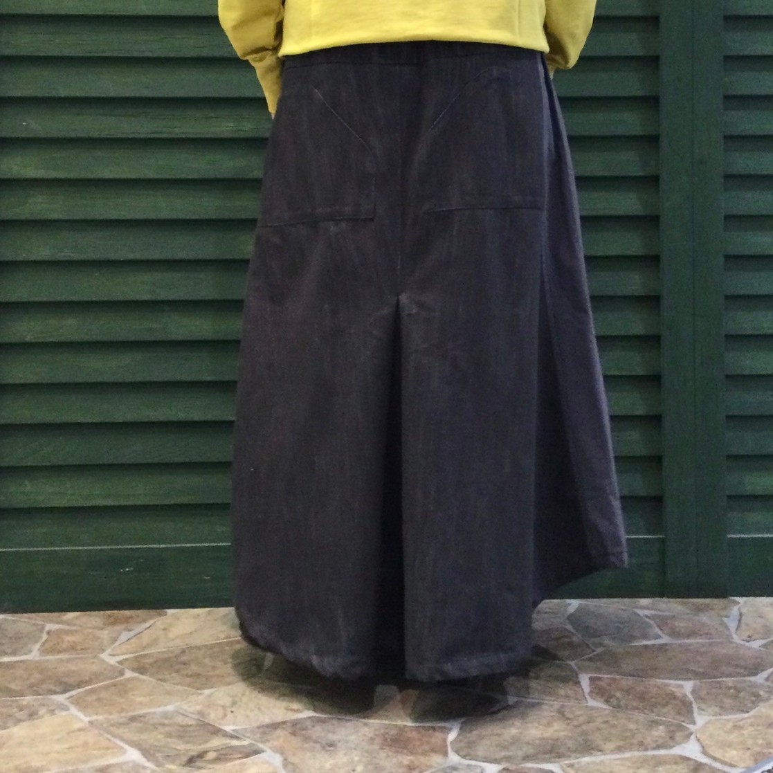 裾が前後差のあるシルエットで、大きくタックが入っいて、ふわっと広がったフレアのシルエットがさり気ない女性らしさを演出してくれます