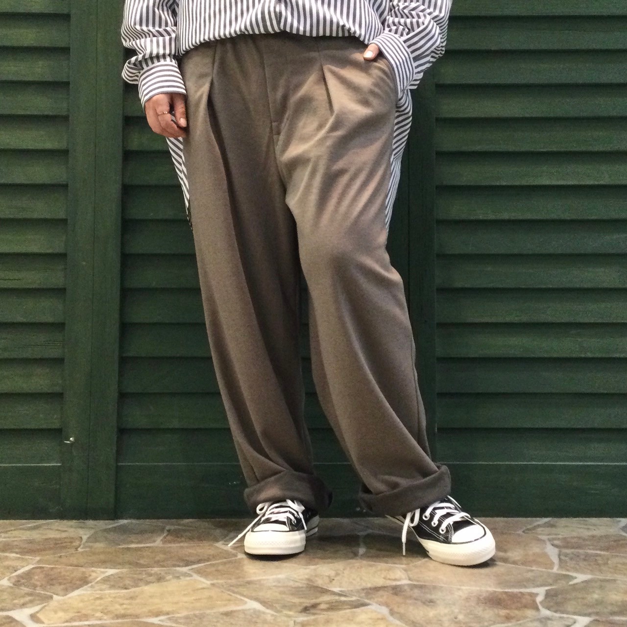 シンプルなデザインでどんなジャンルにも合わせやすいイージータックパンツ!