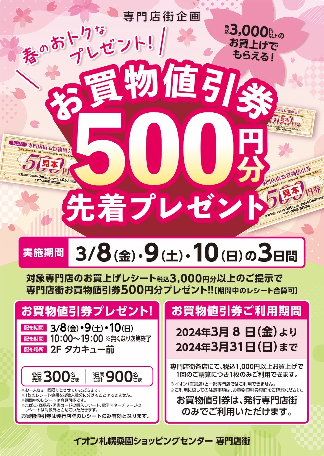 本日から3日間、イオン桑園店では春の期間限定イベントを開催しております。