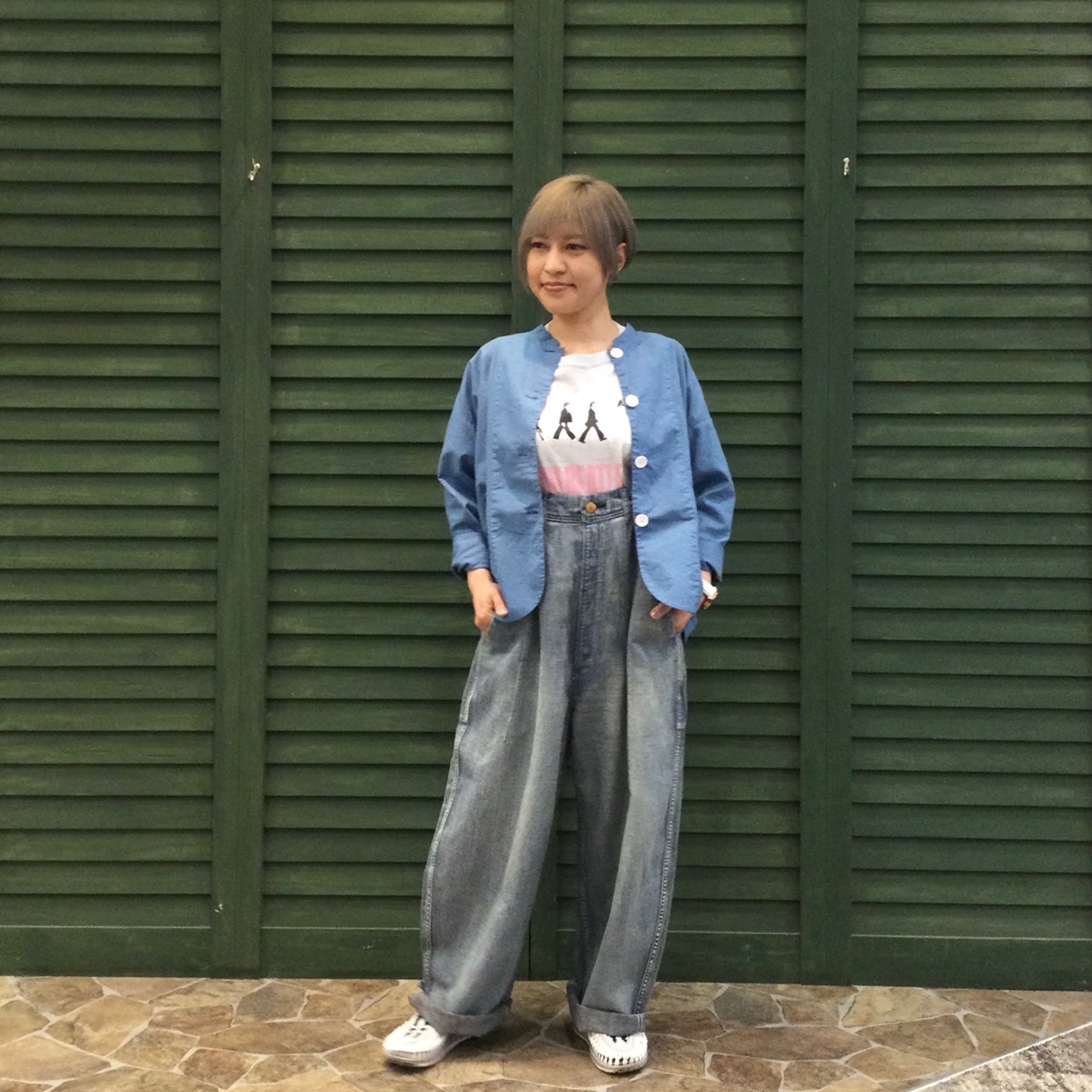 太めサロペット・古着系Tシャツと合わせてボーイズライクに