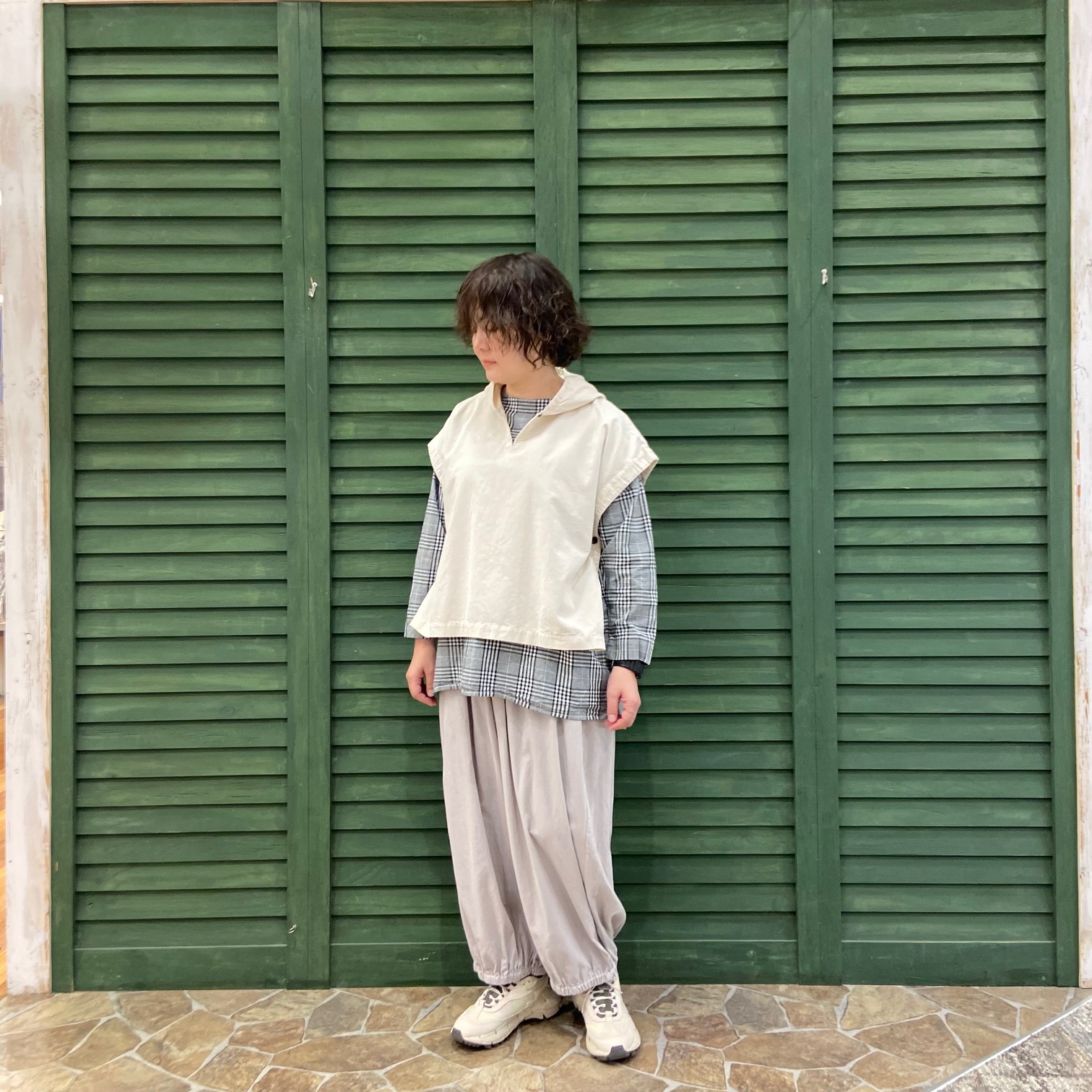 ボトムスは毎年人気のコーデュロイ生地のバルーンパンツ