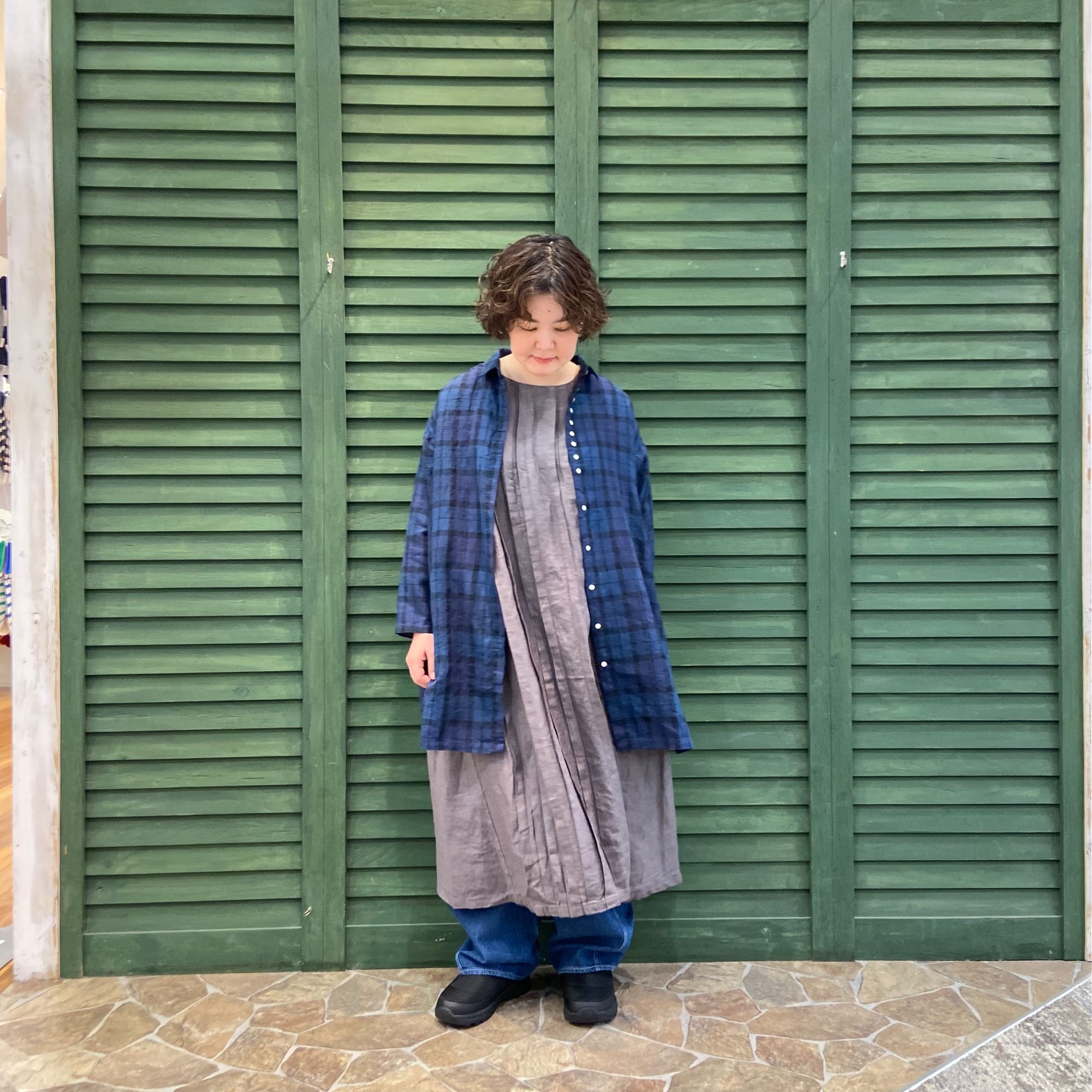 中に合わせたブラウスは久しぶりに登場した08Mab定番のネイビーのチェック柄です