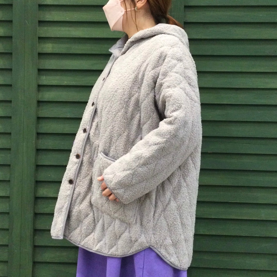 ふっくらとした厚みのループボア中綿キルティングフードワイドコート