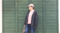 身幅広めのシルエットなので、厚手のパーカーやトレーナーの上からも余裕で羽織れるサイズ感になっています。