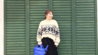 ノルディック柄をメインでコーデしたので、ボトムスはシンプルにブラックにしました。