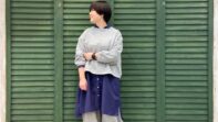アーム部分は以前発売のシャツワンピースよりも少し緩くなりましたが、袖幅を広げすぎず重ね着しやすいサイズ感になっているのでこんな風に着る事が出来ます