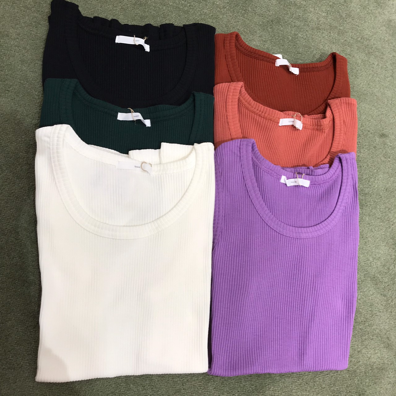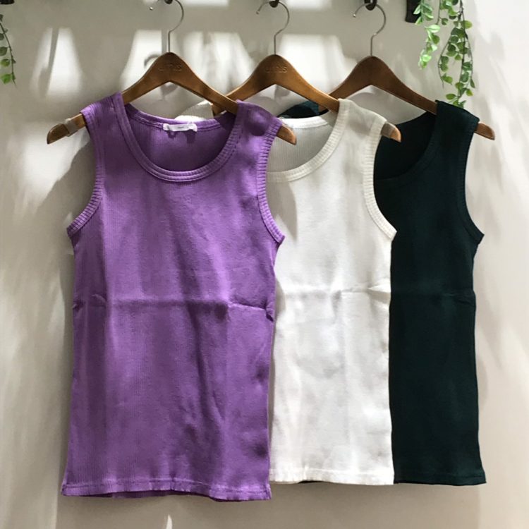 そして、中に着た今年流行のテレコ素材のタンクトップ。