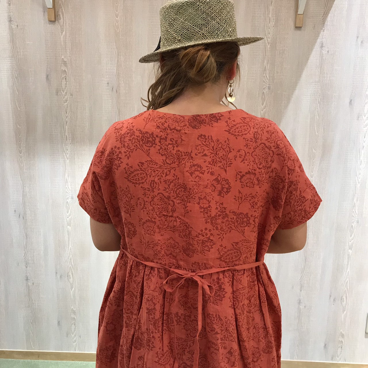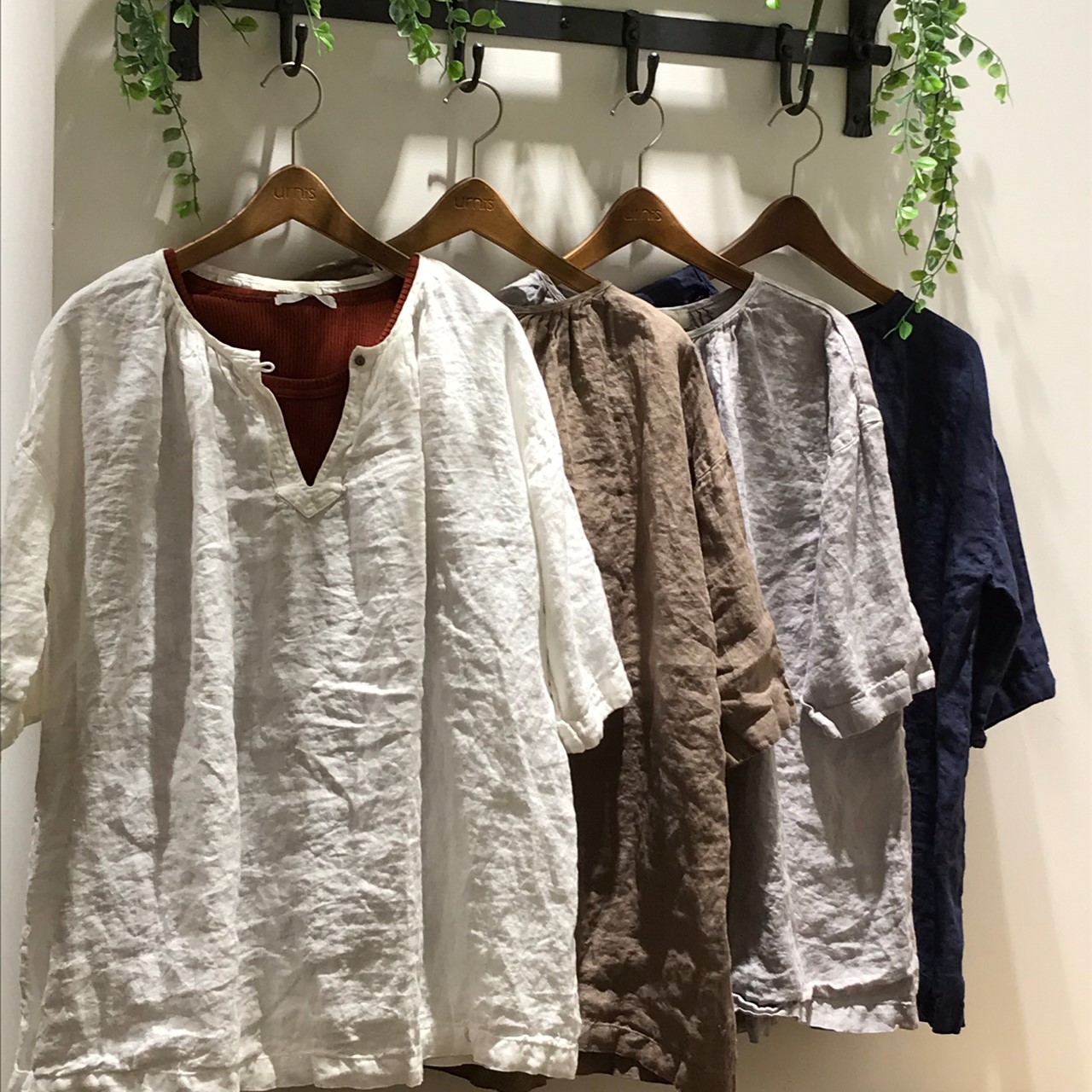【リネン綾織日本製品染めスキッパーチュニック6分袖