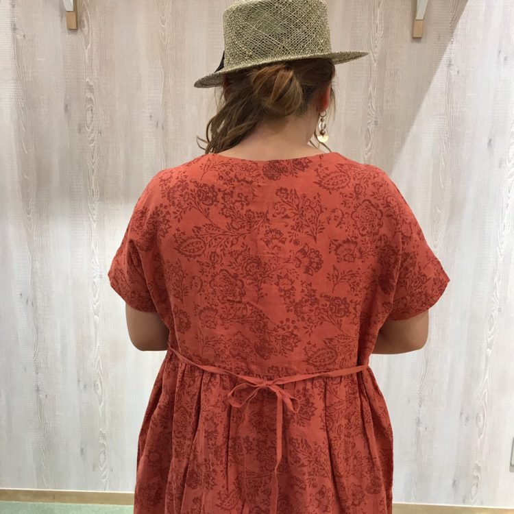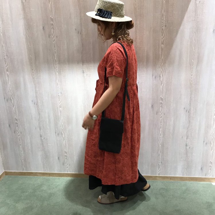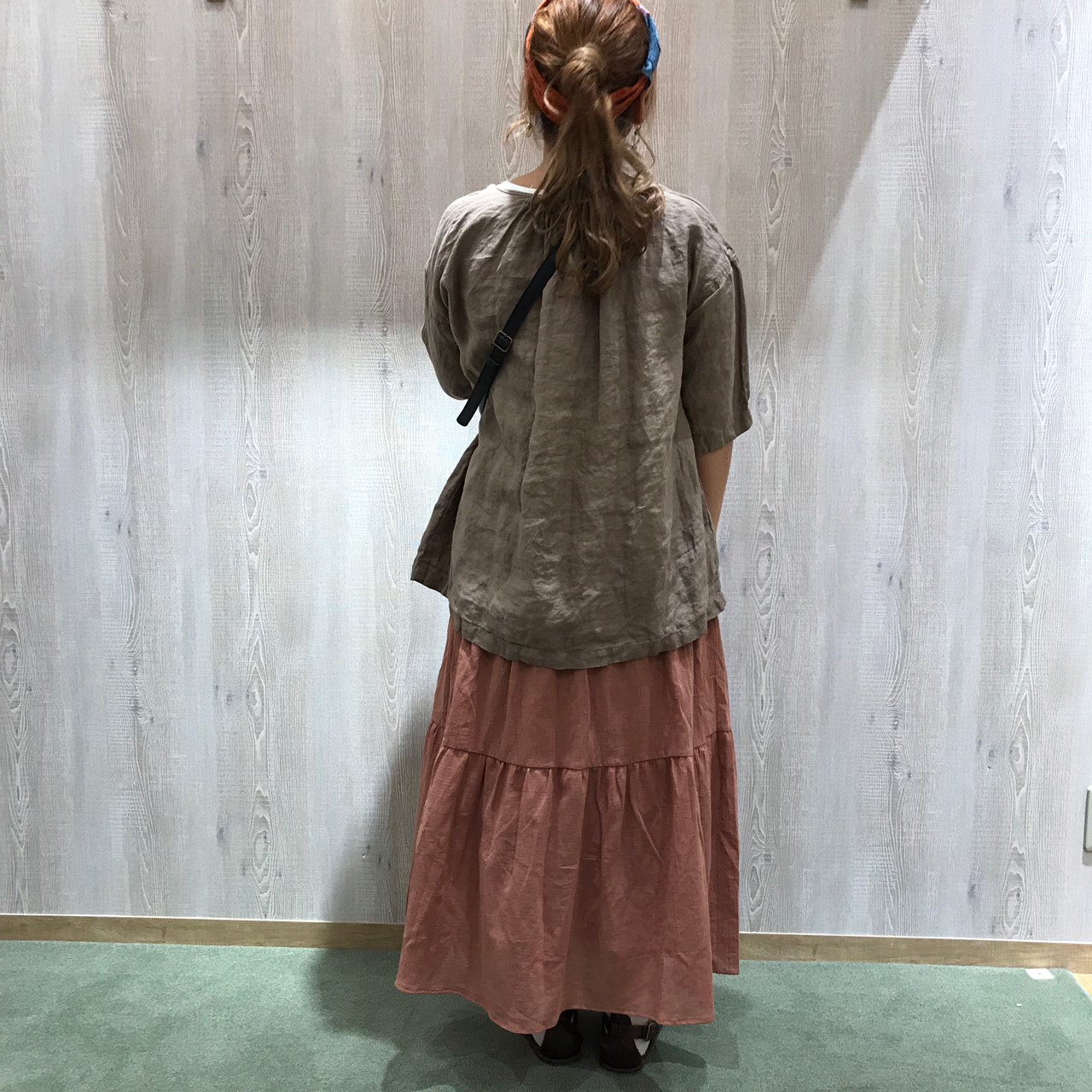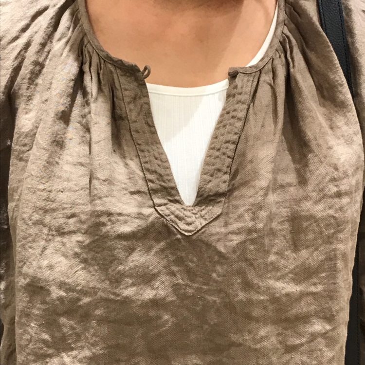 襟元にはギャザーがあり、ゆったりとしたシルエットです。