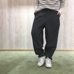 合わせたパンツは股上が深くウエスト部分のサイドにゴムがあり