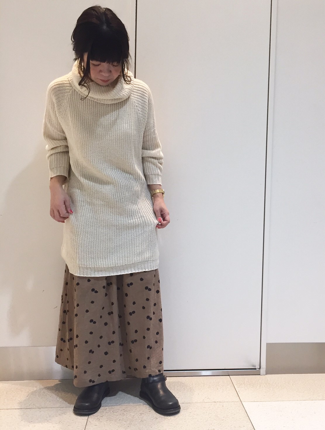 シンプルなタートルニットを合わせてスカートの存在感を際立たせました♪