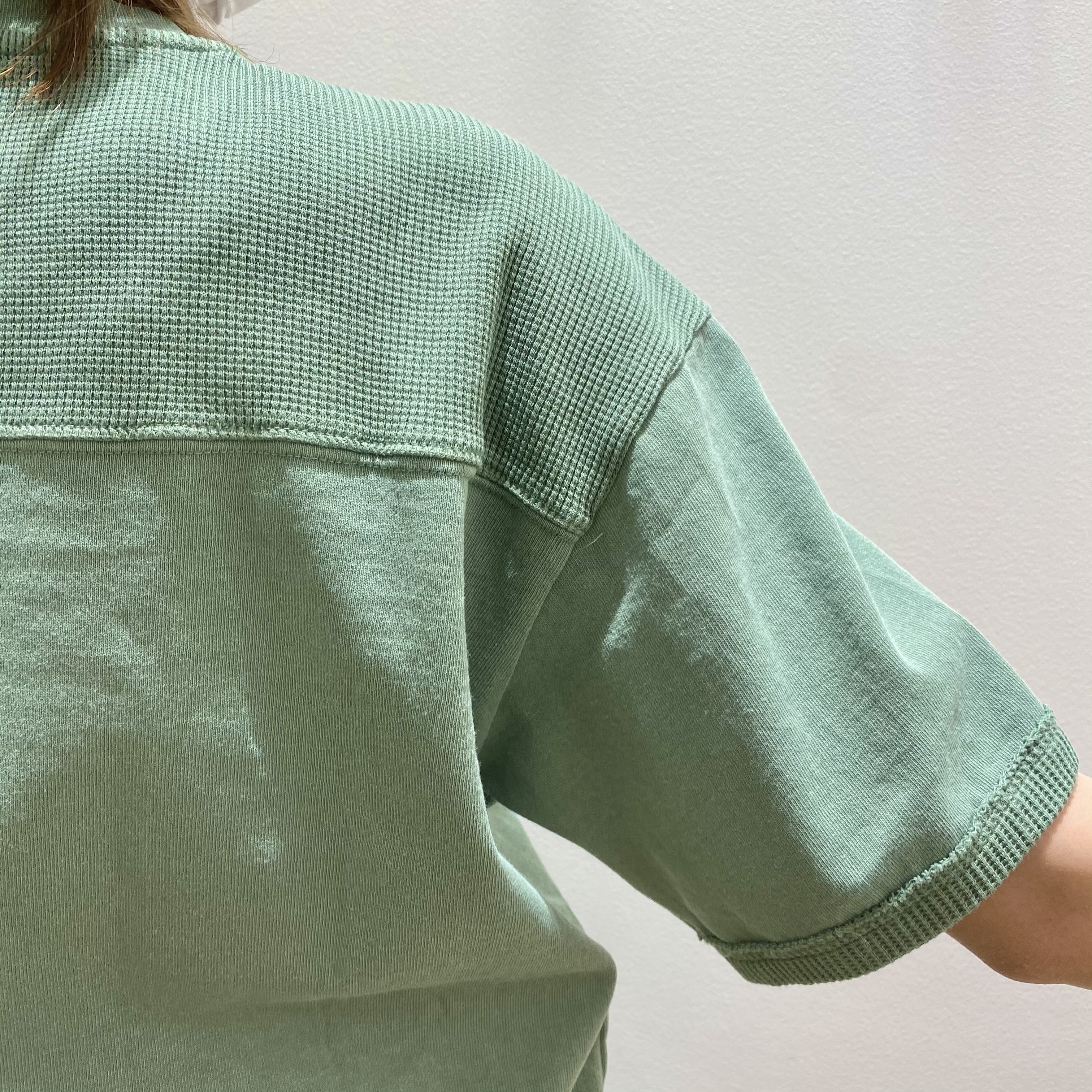 1つ目のコーデでご紹介した【CUBE SUGAR】のTシャツと同じく、こちらもカットソーとワッフルの異素材Mixデザイン。