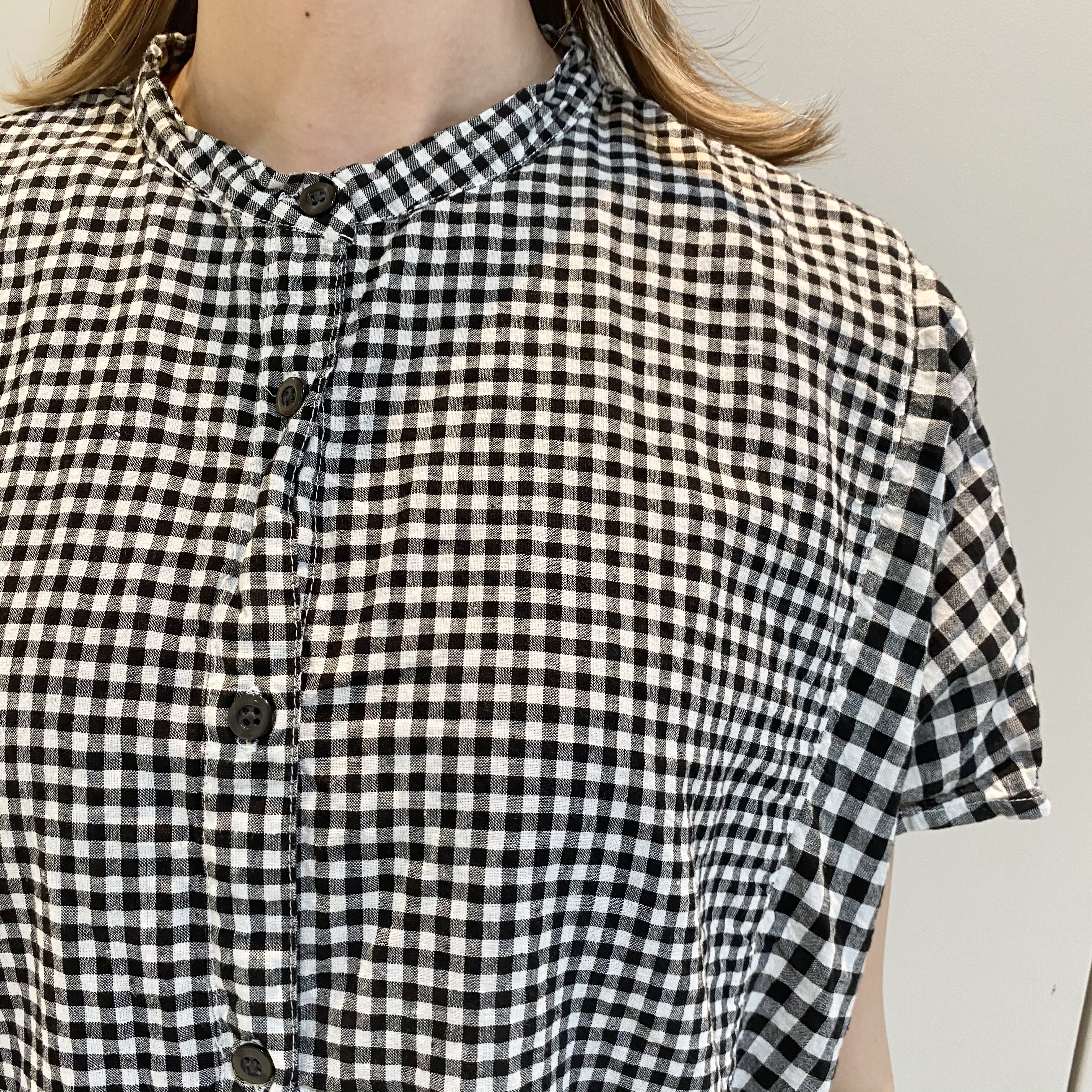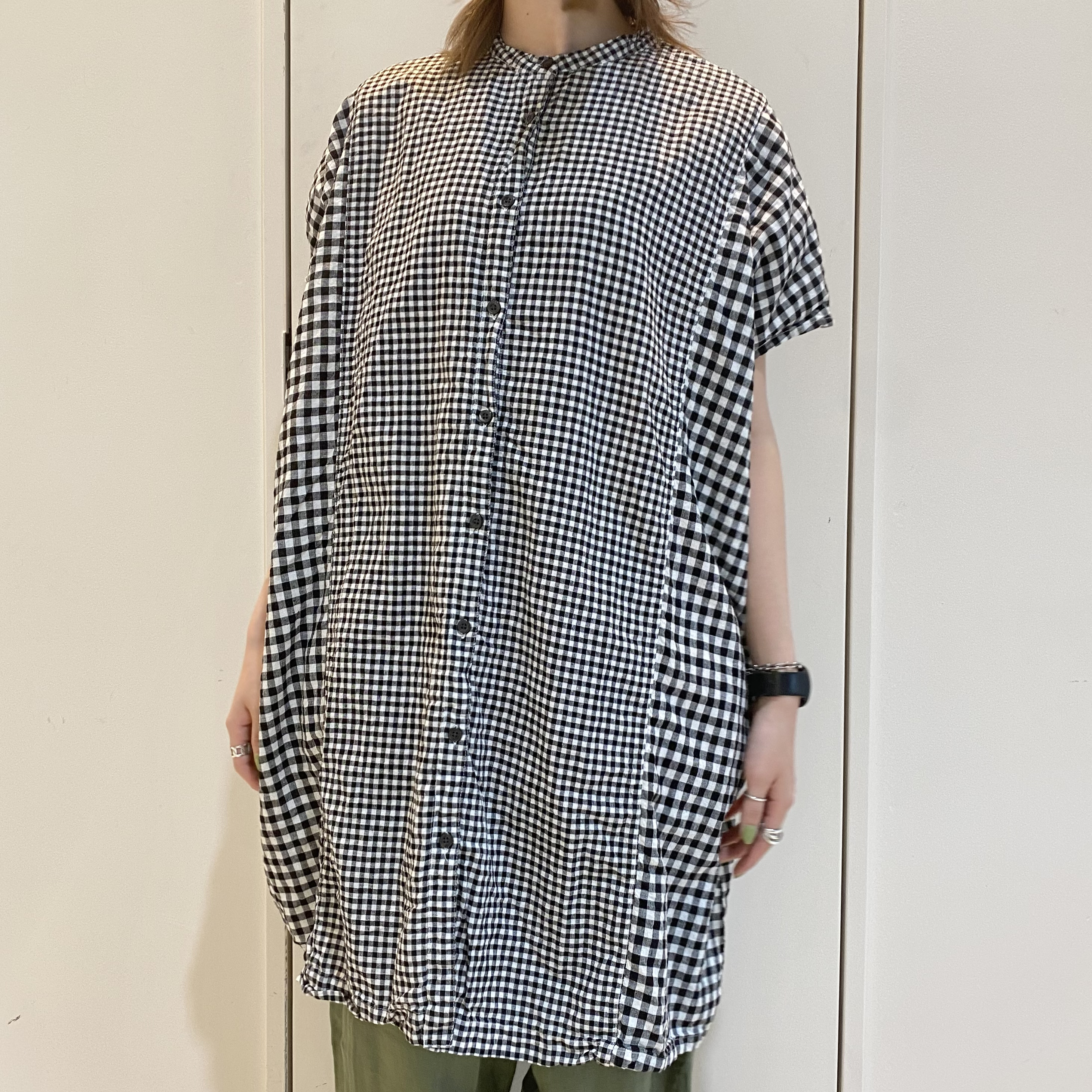 ◼️綿麻ギンガム切替日本製品染シャツワンピース