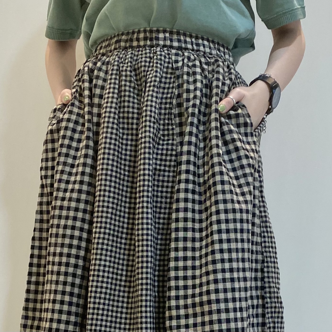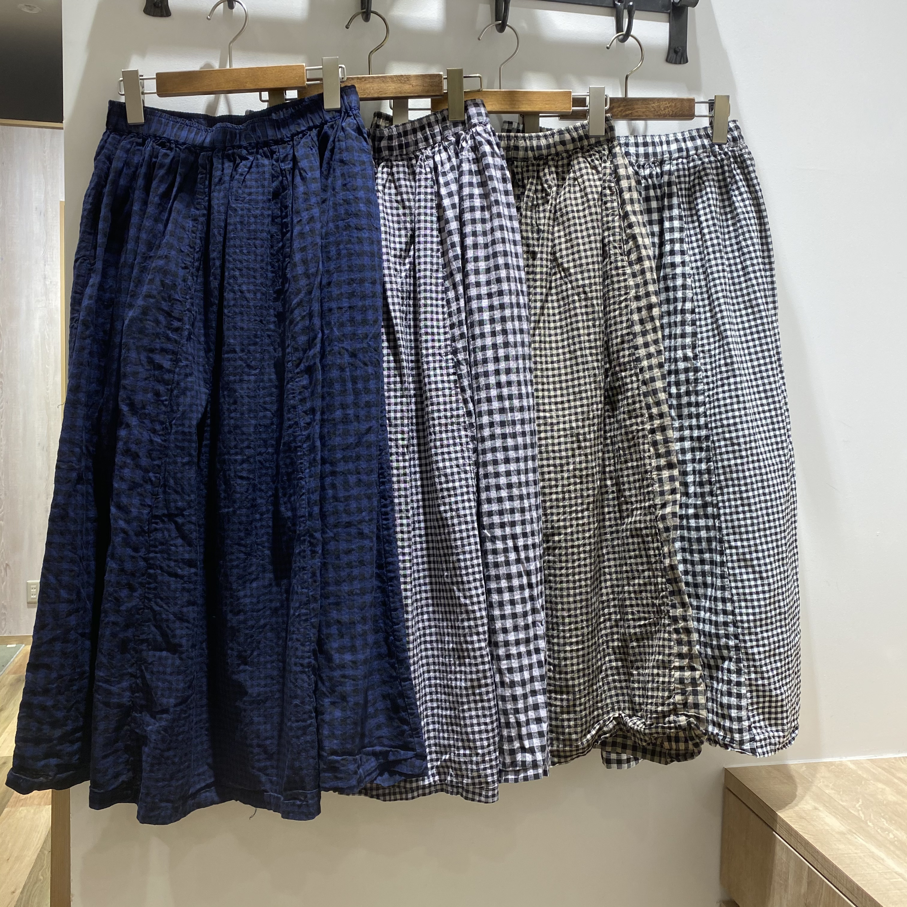 ◼️綿麻ギンガム切替日本製品染スカート