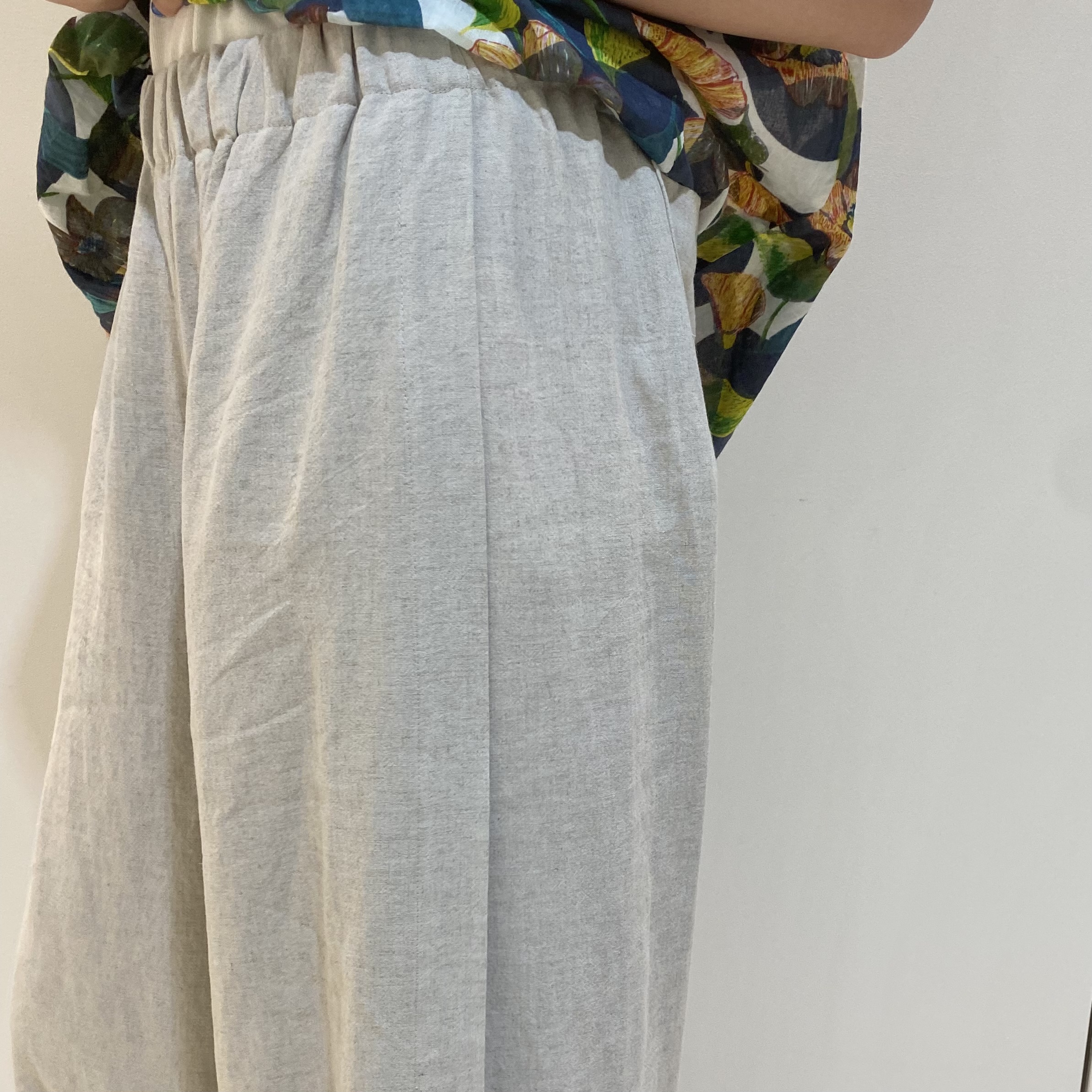 コーデに取り入れやすいベーシックなカラー&シルエットながらも、素材には落ち感の綺麗な麻レーヨンを使用し、動くたびにヒラリと生地が揺れる、こだわりの詰まった1枚です。