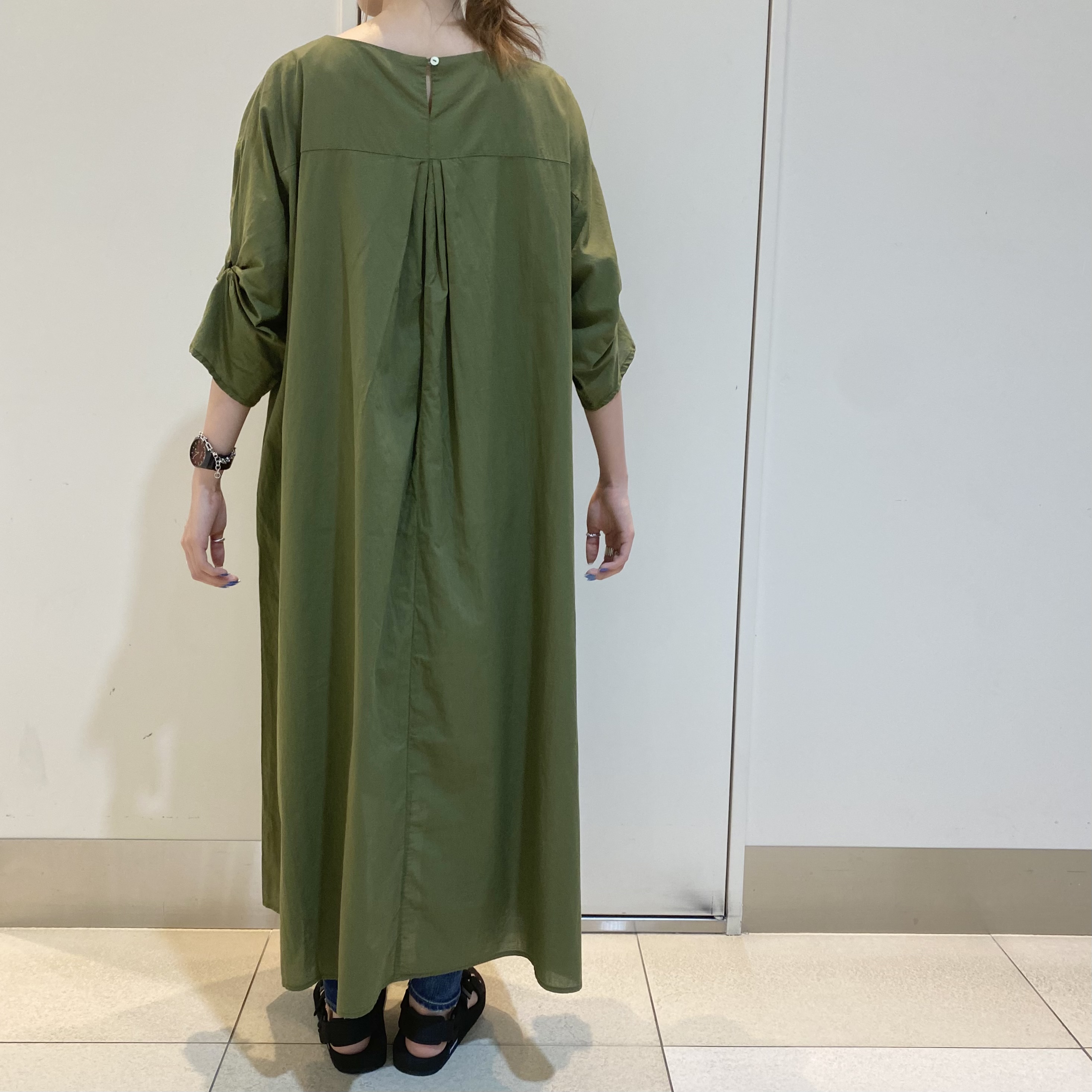 ふんわりとしたゆとりのあるシルエットながらも、ボートネックや前裾をラウンドヘムに仕立てた前後差のある裾がすっきり見えするポイントに。