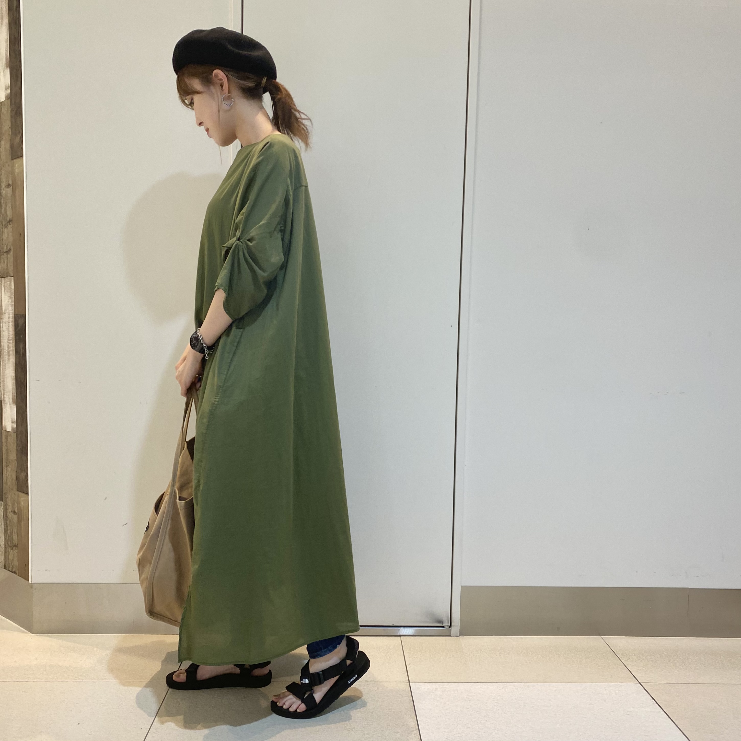 スキニー合わせで分量感に強弱をつけて、ふんわりゆったりシルエットを楽しむワンピーススタイルです♪
