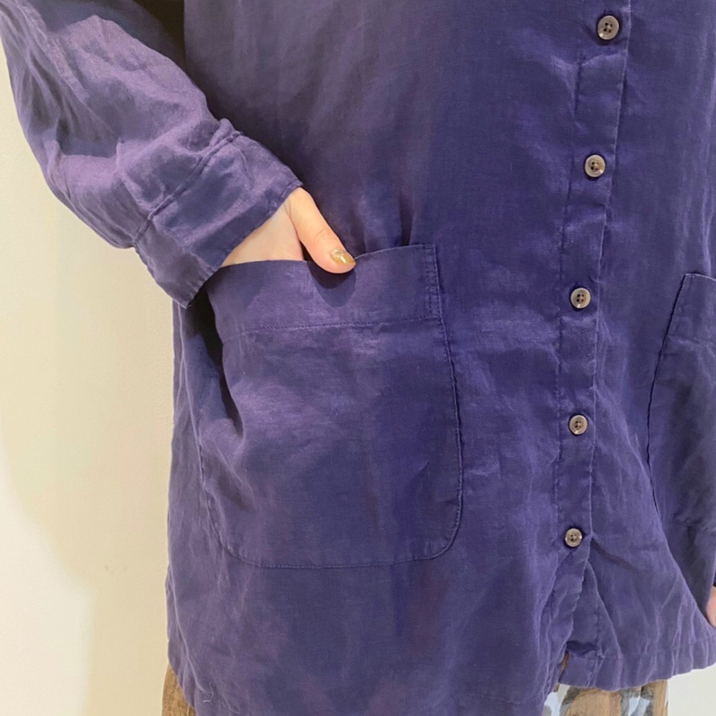 ▽フレンチリネン日本製品染ポケ付きワークSH長袖