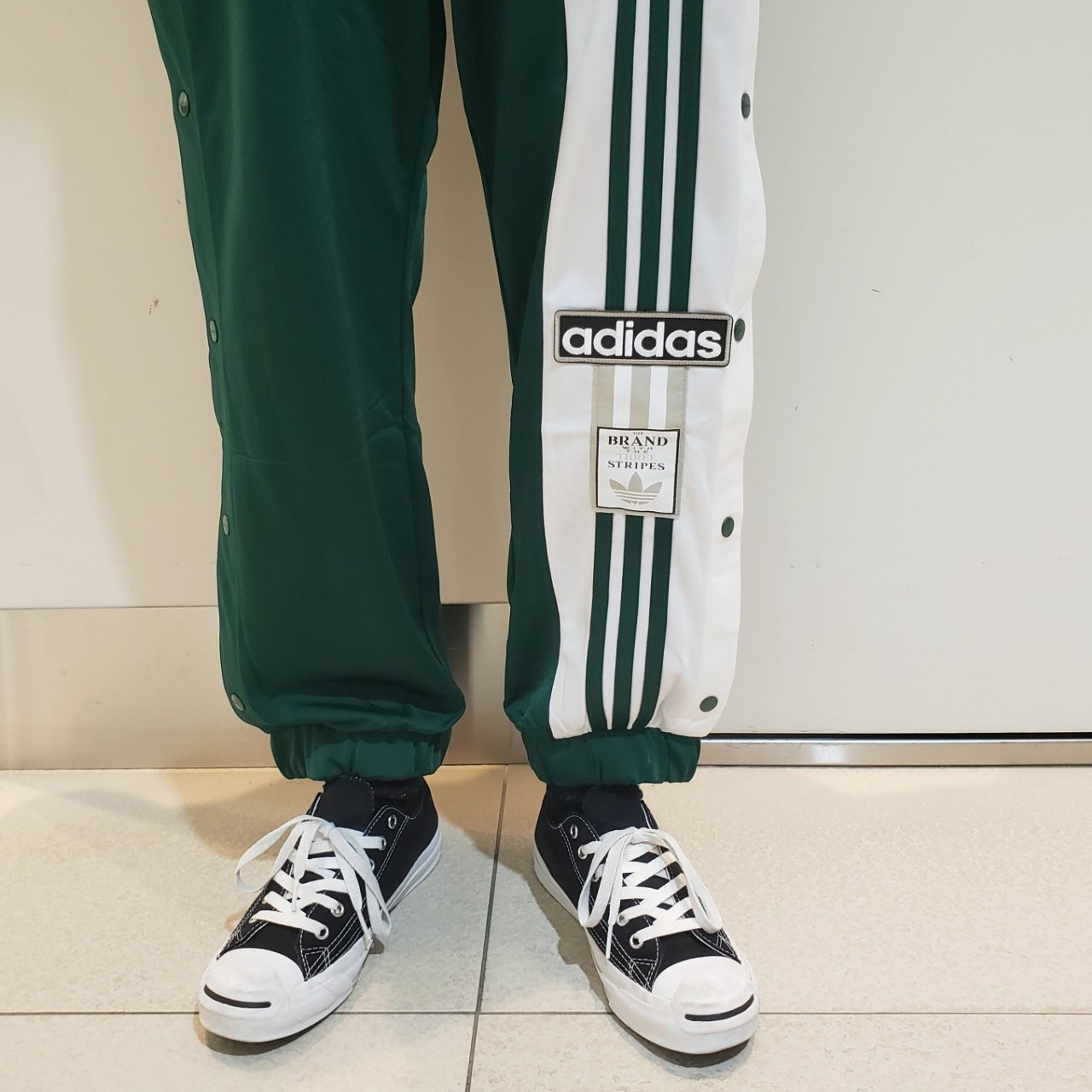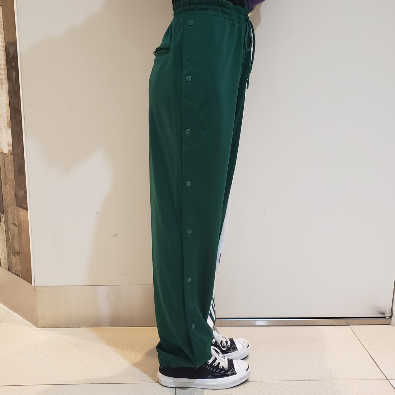 トラックパンツをカチっとしたシャツで合わせてスポーティになりすぎないようにしました!