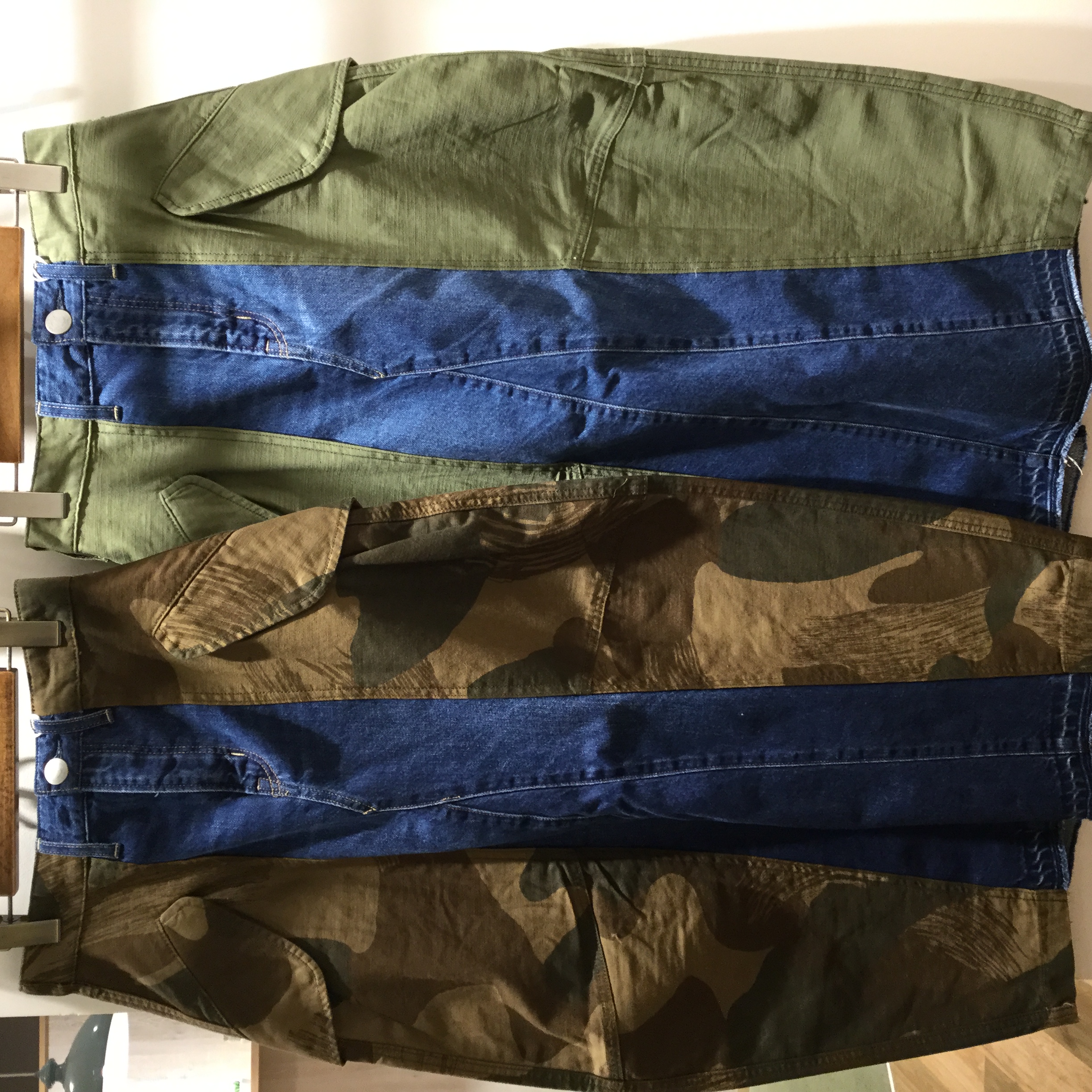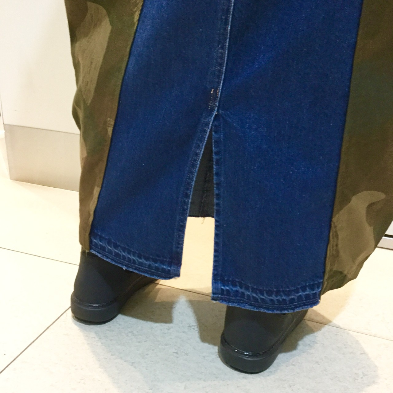 デニムとカーゴパンツをドッキングさせたデザイン。