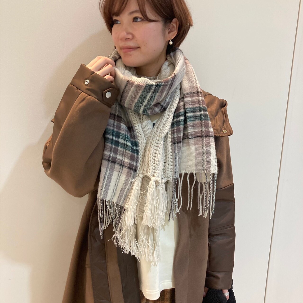 チェック×ニットマフラー